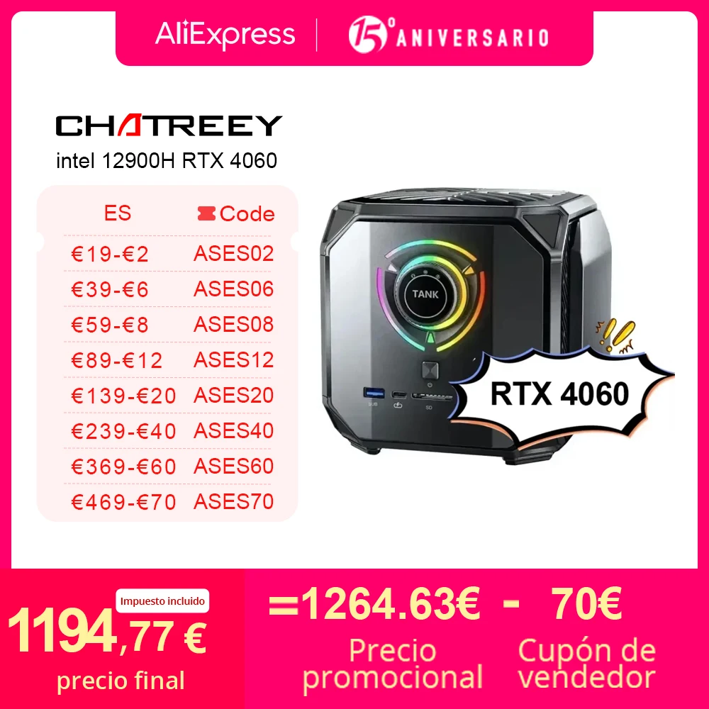 ♡Vista rápidaChatreey G2 Mini PC Intel Core i9 12900H i7 12700H con Nvidia RTX 4060 3050 ordenador de escritorio para juegos PCIE 4,0 Wifi 6 BT5.0531.60 EUREUR 8890.02Destacado★★★★★★4.8