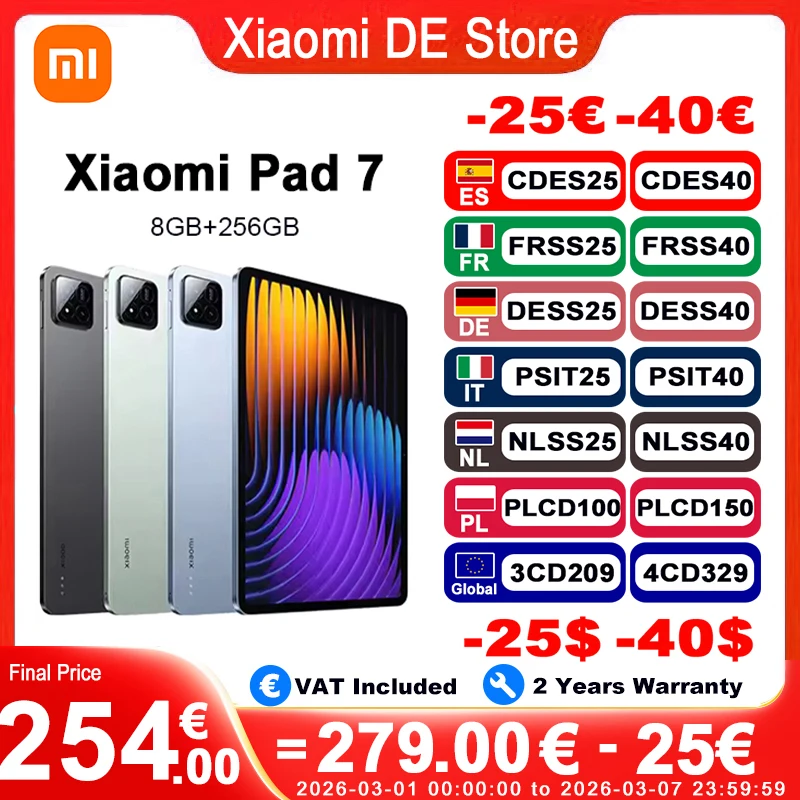 ♡Vista rápidaXiaomi Pad 7 versión Global Mi Tablet Snapdragon 7+ Gen 3 11,2 "3,2 K 144Hz pantalla Adreno GPU 45W Turbo carga 8850mAh320.00 EUREUR 640.00Destacado★★★★★★4.9
