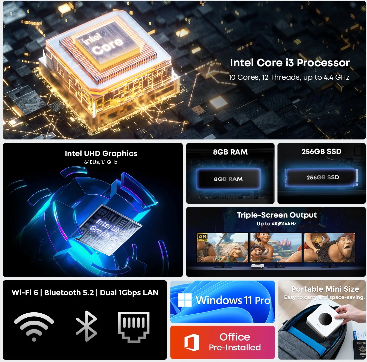 ♡Vista rápidaMicroData-Mini PC N100, 8GB, 256GB,16G, 512G, Intel 12. ª generación, 4 núcleos, pantalla Dual, salida 4K, DDR5, WIFI, 2,4G/5G, BT4.2154.16 EUREUR 346.06Destacado★★★★★★4.9