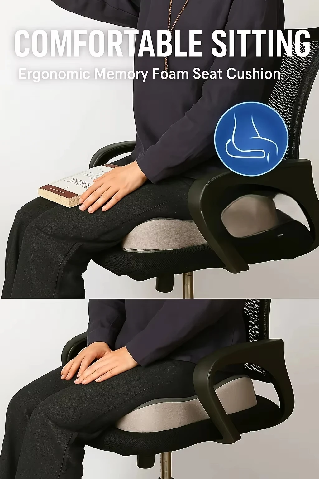 Cojín de espuma viscoelástica para silla de oficina, silla de estudiante, asiento de coche, alivia la carga de la columna vertebral y la cadera, tela fresca y transpirable, fácil de limpiar - TopDealBox