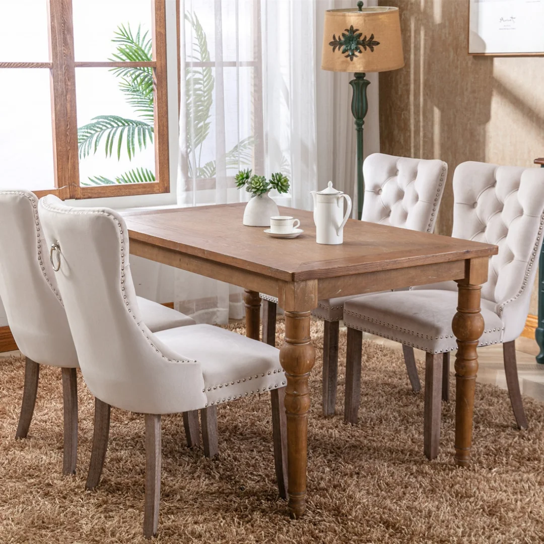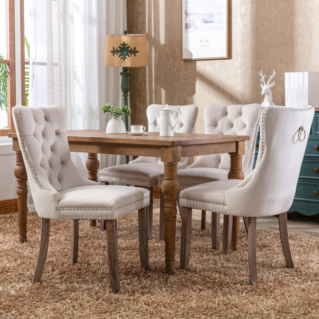 Colección Nikki: Silla de Comedor Moderna de Alta Gama, Tapizada en Terciopelo, con Patas de Madera y Detalles de Tachuelas, Estilo Contemporáneo - TopDealBox