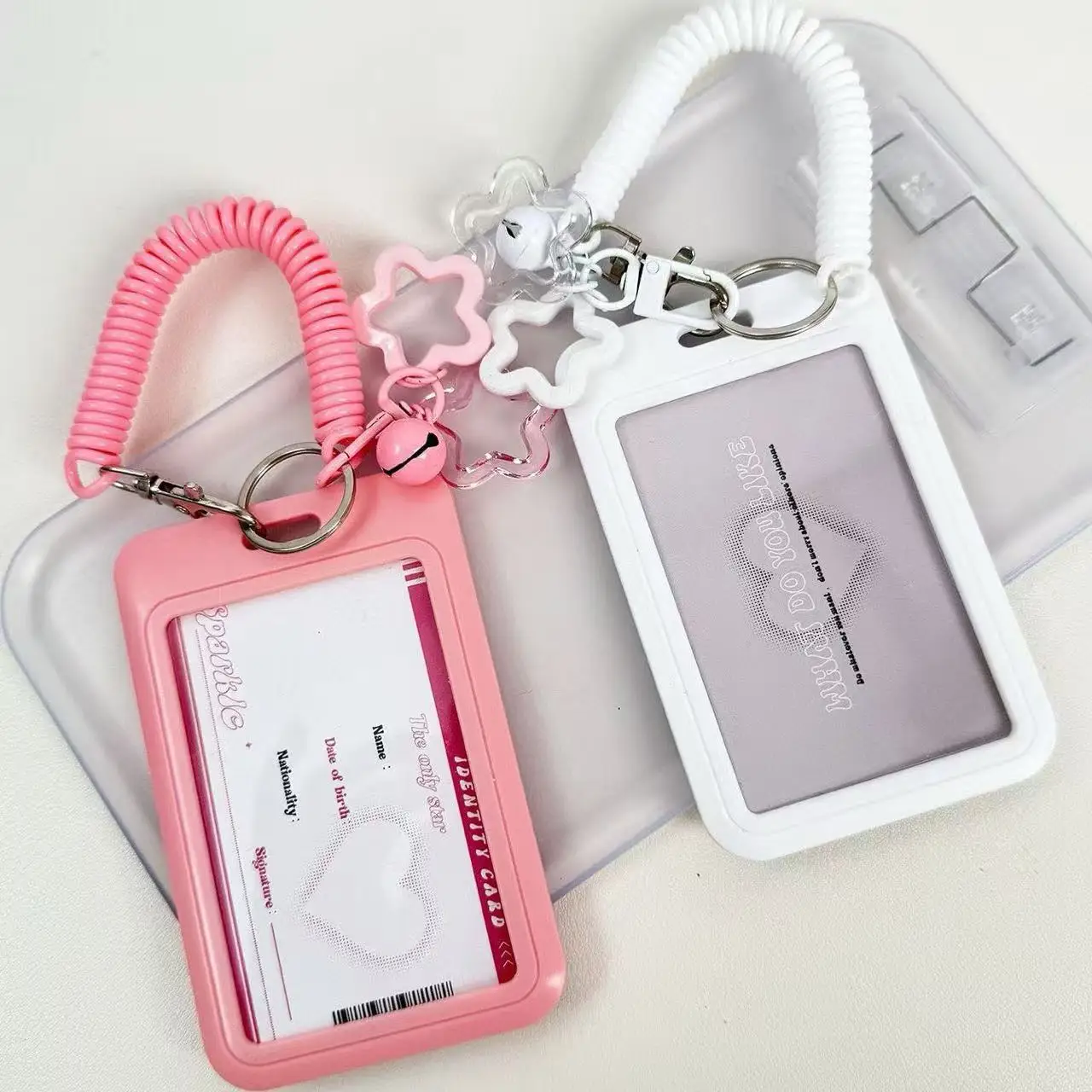 colorido tarjetero de identificación de plástico retráctil en forma de estrella con llavero. Lindo y práctico, apto para tarjetas de autobuses, identificación del campus, - TopDealBox