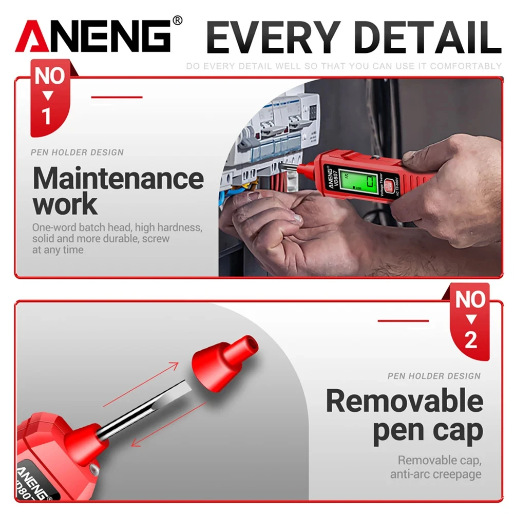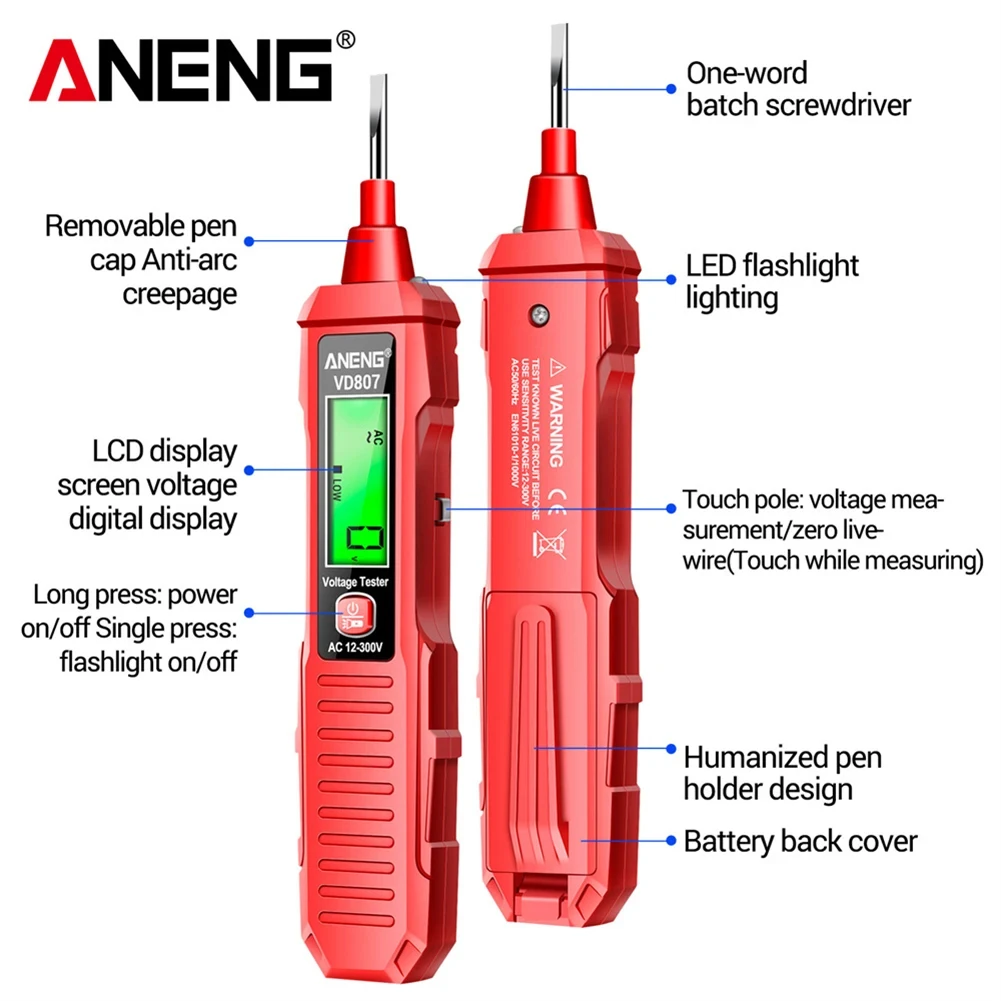 Comprobador de Circuitos Digitales VD807, Herramienta de Detección de Roturas de Cable de CA 12-300V, 50/60Hz, Pantalla LCD, Alarma de Luz y Sonido, Comprobador de Cable de Tierra - TopDealBox