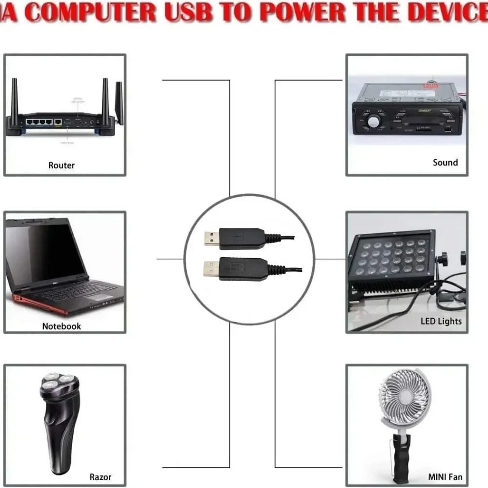 Conector de Cable de alimentación WiFi de 5,5x2,1mm, Cable de alimentación DC de 5V a 5V/9V/12V, módulo elevador, adaptador convertidor de refuerzo de Cable USB - TopDealBox