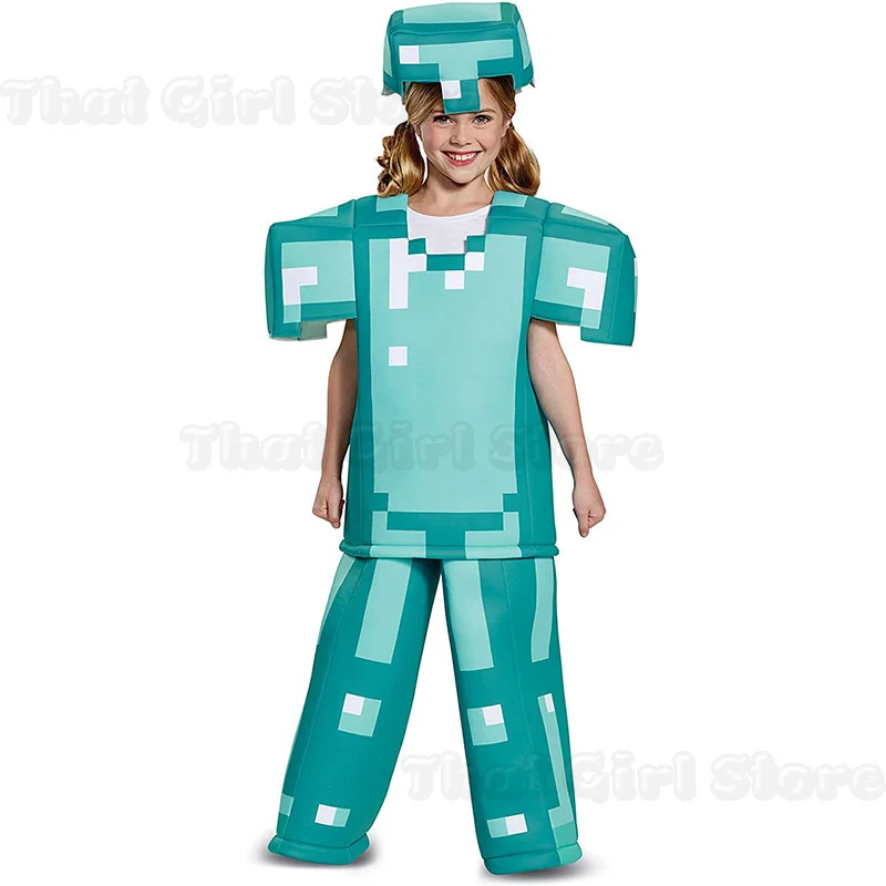 Cosplay para niños, armadura de diamante, personaje del juego, disfraces de Steve, conjunto de 3 piezas, trajes azules, conjunto de vestir para traje de Halloween - TopDealBox