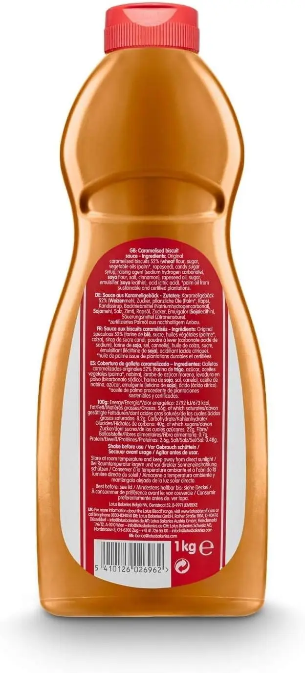 Crema de Galleta Lotus - Botella 1 Litro - Topping Galleta Biscoff Lotus - Vegano - Sin Aromas ni Colorantes Artificiales - Botella Exprimible - TopDealBox