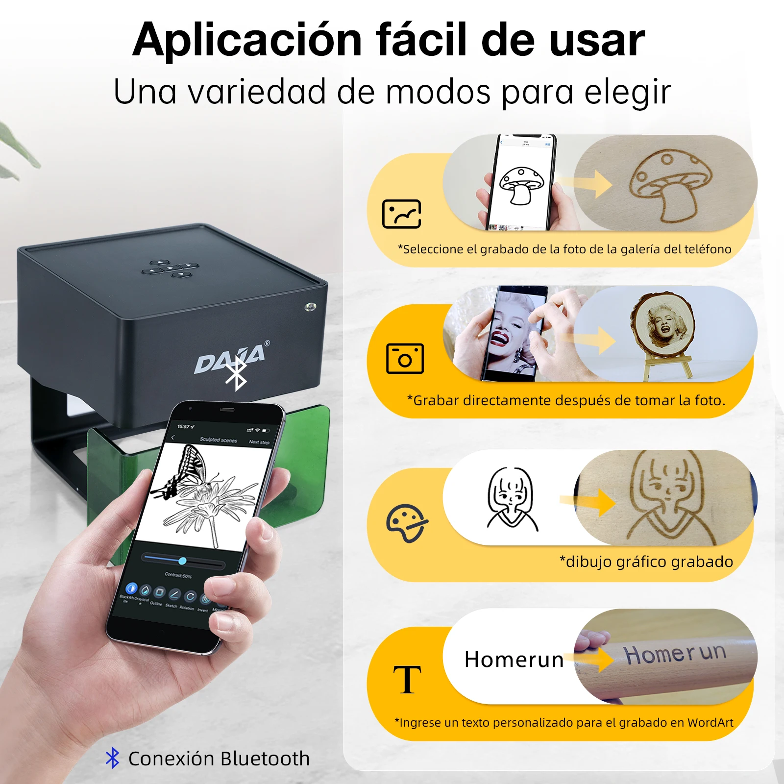 ♡Vista rápidaDAJA DJ6 grabador láser Mini portátil Bluetooth DIY máquina de grabado de corte grabar marca madera pintada Metal acrílico vidrio cuero149.41 EUREUR 264.25Destacado★★★★★4.5