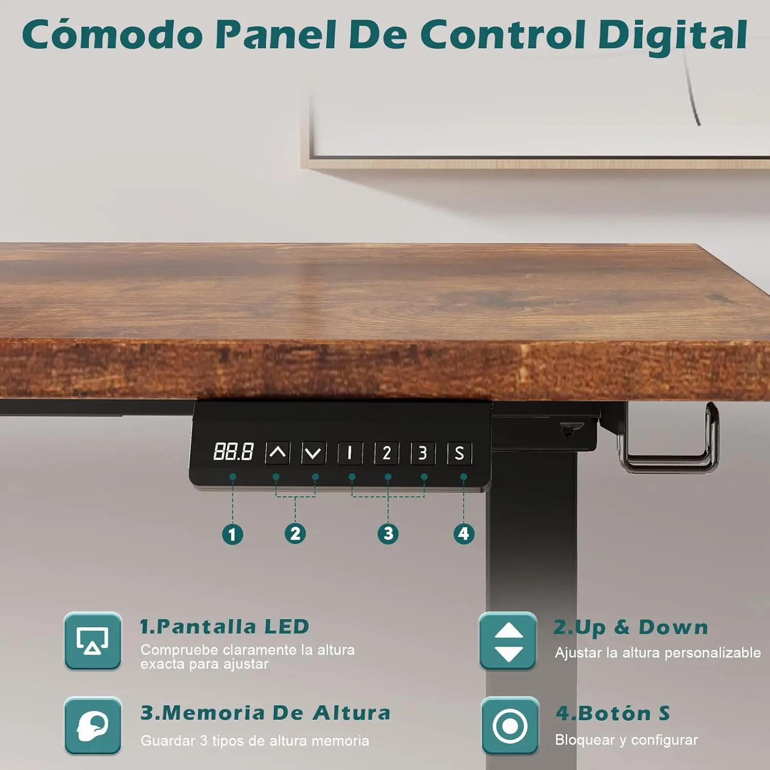 ♡Vista rápidaDevoko Escritorio eléctrico regulable en altura 160x80 cm 3 Memoria Control manual con USB136.44 EUREUR 260.48Destacado★★★★★★3.8