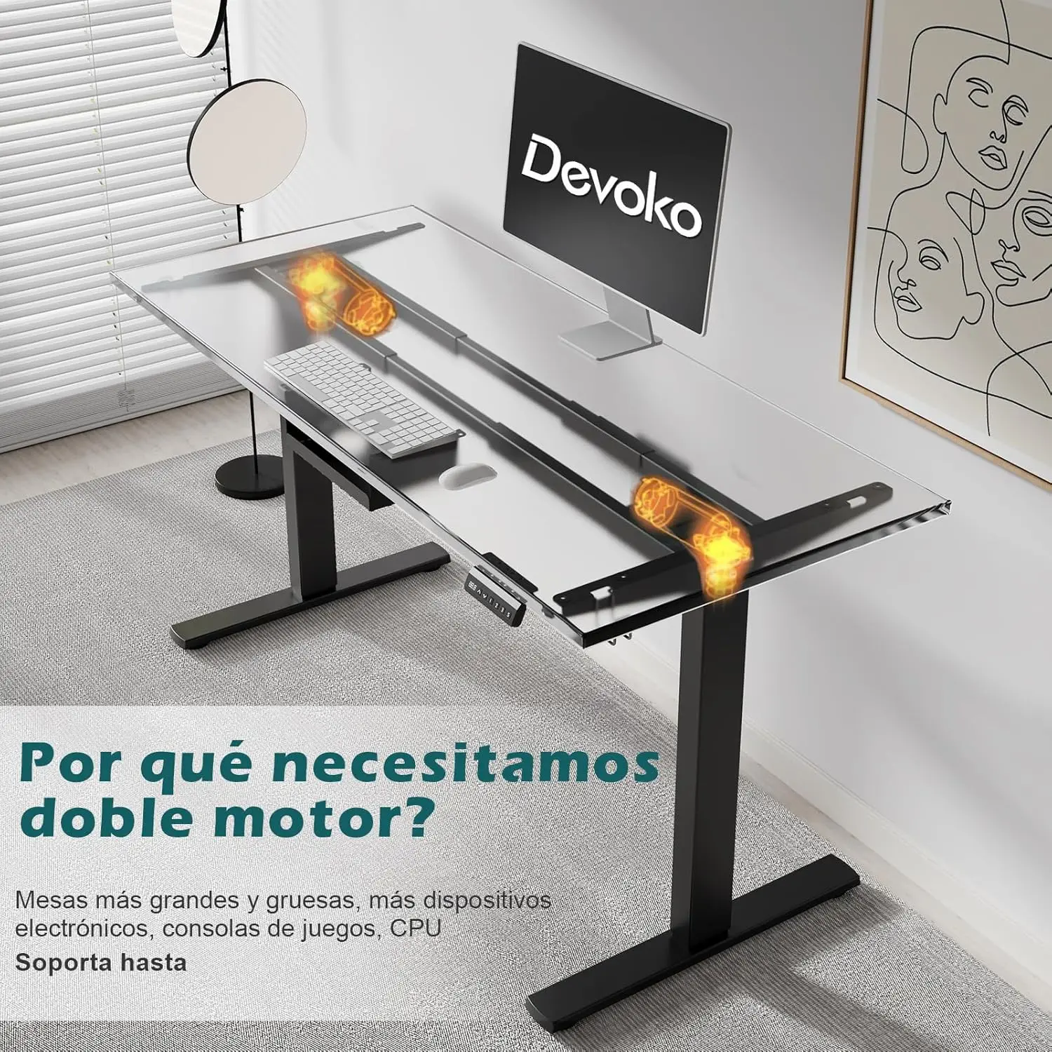 ♡Vista rápidaDevoko Escritorio eléctrico regulable en altura 140x70 cm 3 Memoria Control manual con USB129.25 EUREUR 246.76Destacado★★★★★★4.9
