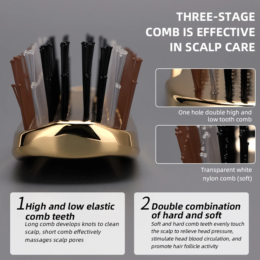 Electroplat de mango largo para limpieza del cuero cabelludo, peines de masaje para barbería, cepillo de nailon húmedo y seco, peine esponjoso para salón y hogar, accesorios - TopDealBox