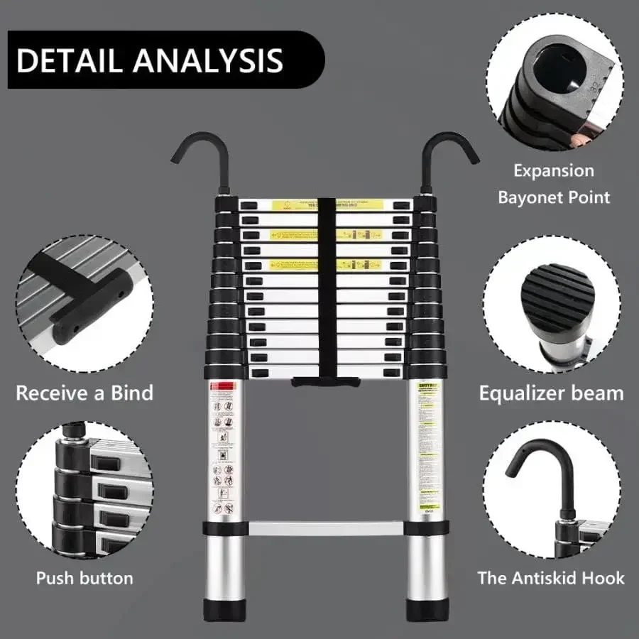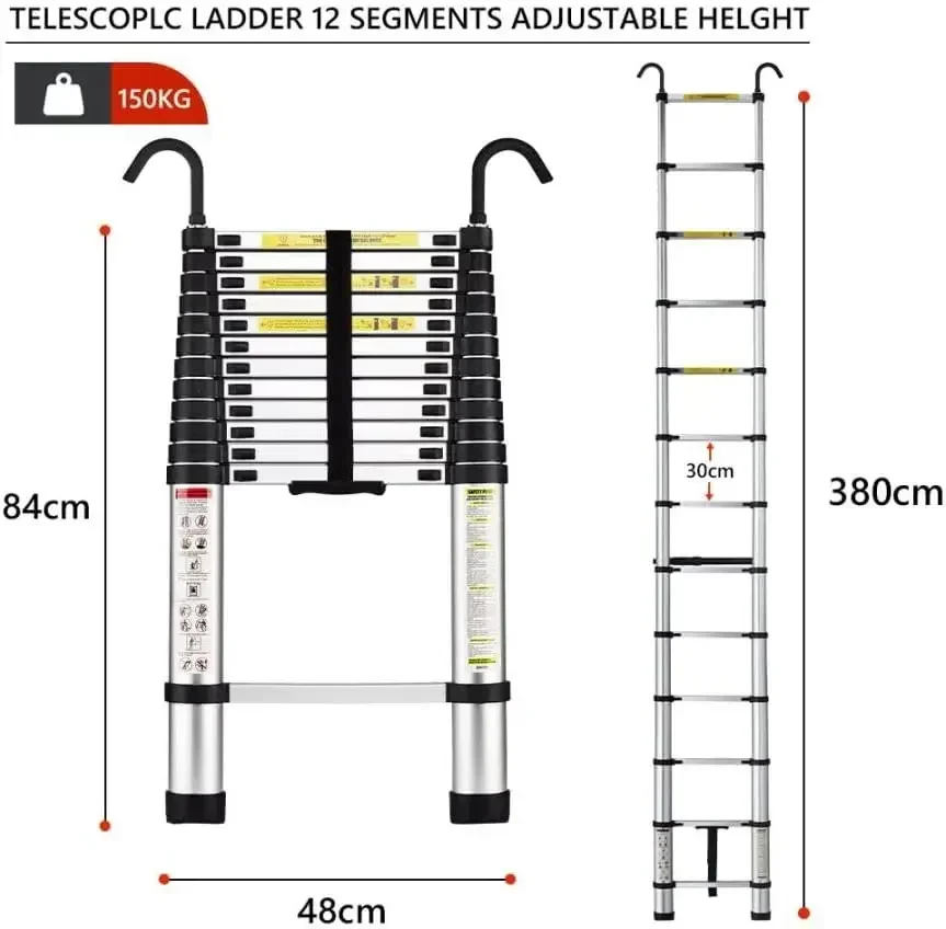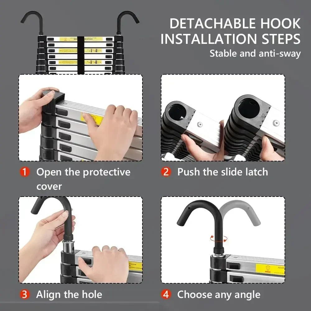 ↑(Envío gratis) Plegable, Reposabrazos Extraíble, Multifunción Portátil Plegable Extensible, Carga Máxima de 150 kg - TopDealBoxEscalera telescópica de 6,2 M, 20,3 pies con gancho desmontable, aluminio, EN131, carga máxima de 150 kg para loft, interior, exterior, oficina, casa