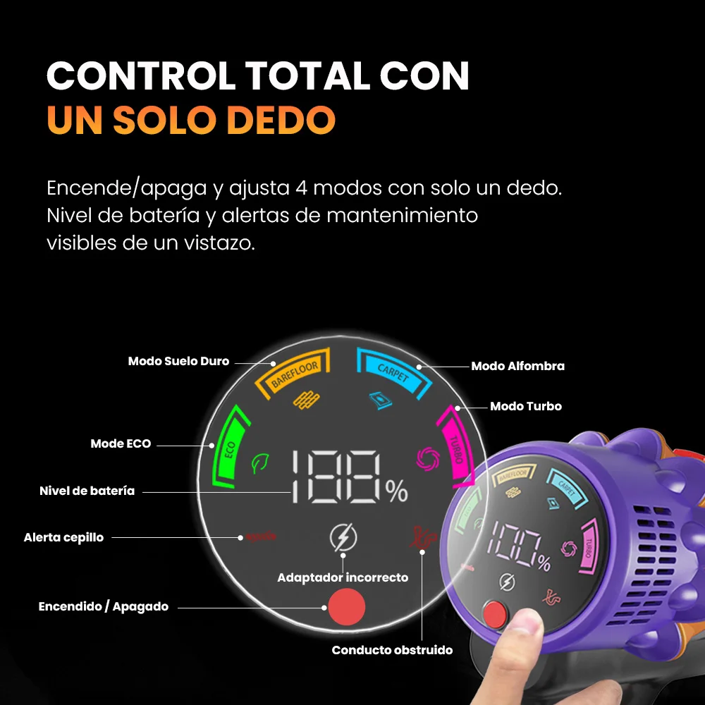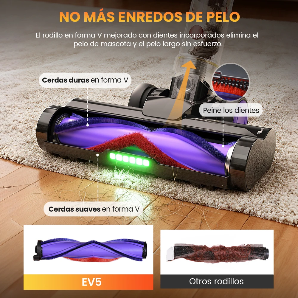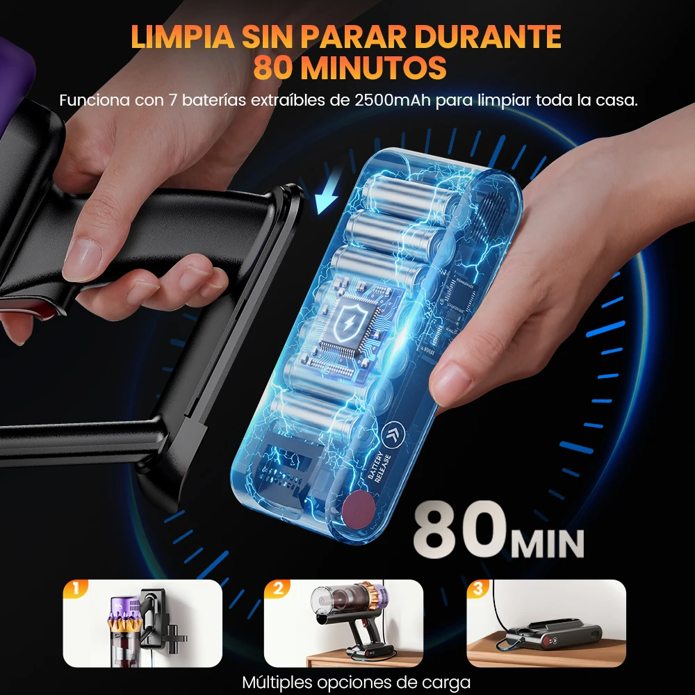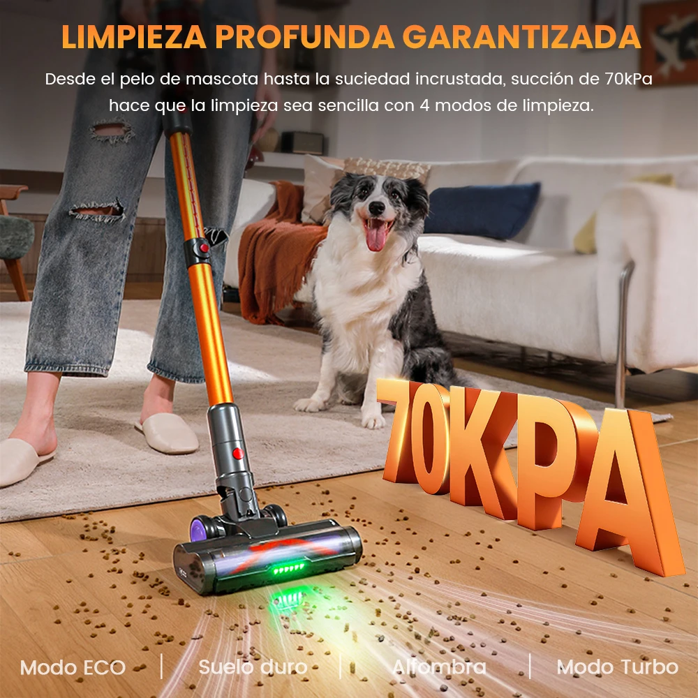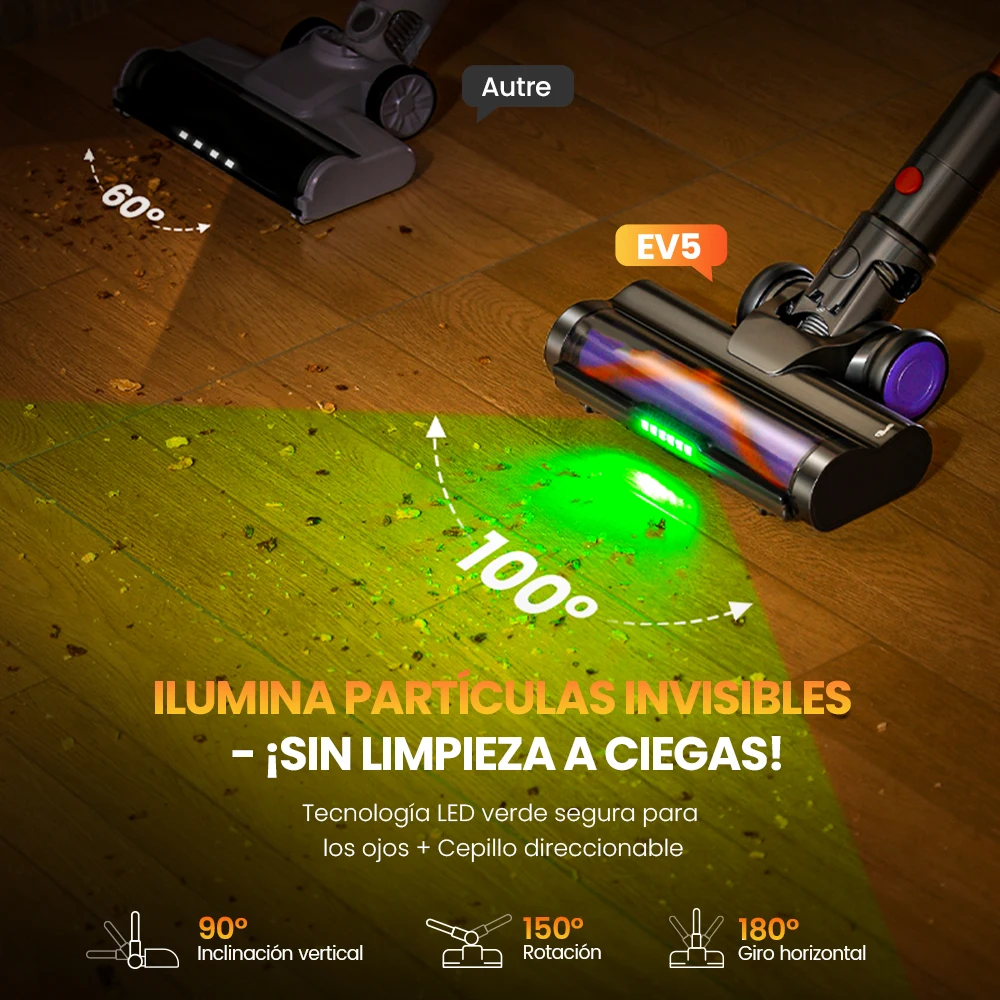 Erabros EV5 550W 70KPA Aspiradora Inalámbrica , Potencia de Succión Ultrafuerte, 80 Minutos de Autonomía, Aspiradora Inteligente de Mano, 4 Modos, Batería extraíble - TopDealBox