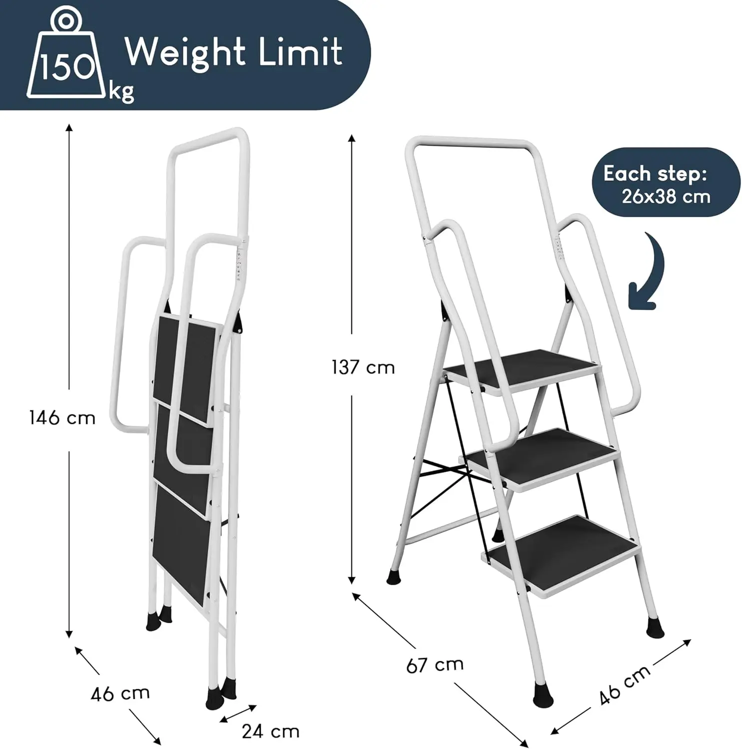 ↑Escalera con 3 escalones Home Vida, con pasamanos de Seguridad, Plegable, Alfombrilla Antideslizante, Resistente - TopDealBoxEscalera telescópica de 6,2 M, 20,3 pies con gancho desmontable, aluminio, EN131, carga máxima de 150 kg para loft, interior, exterior, oficina, casa