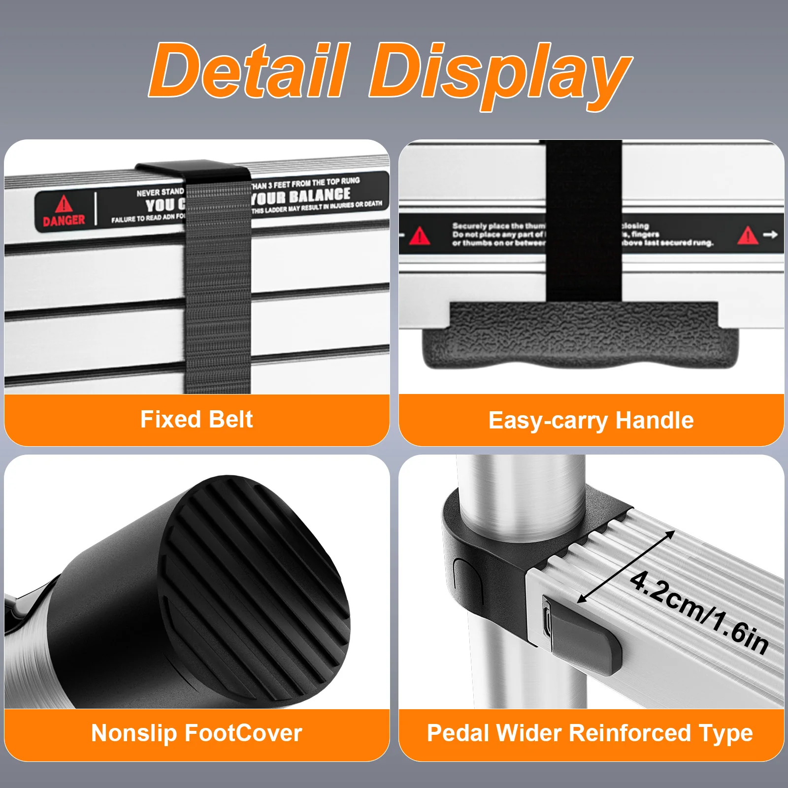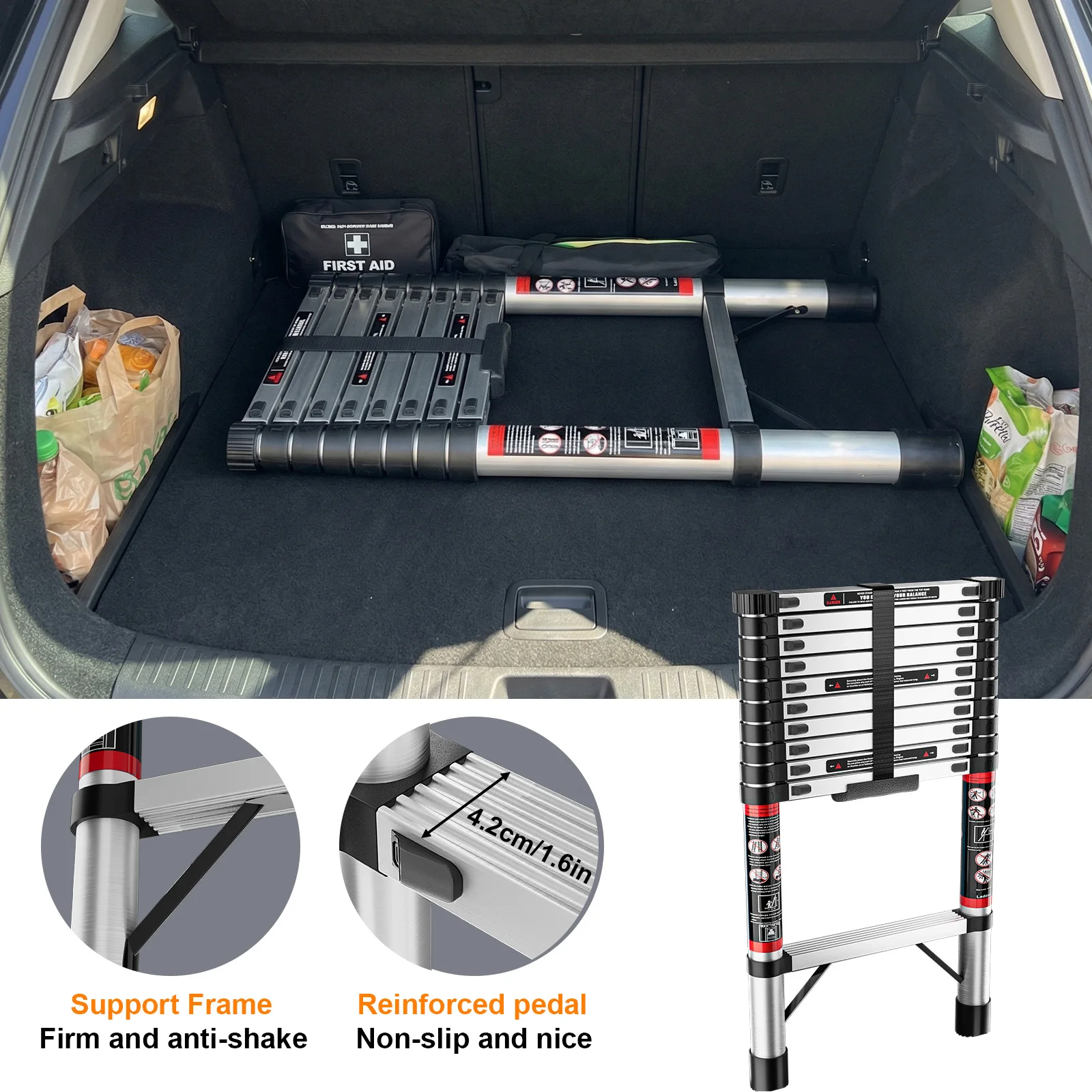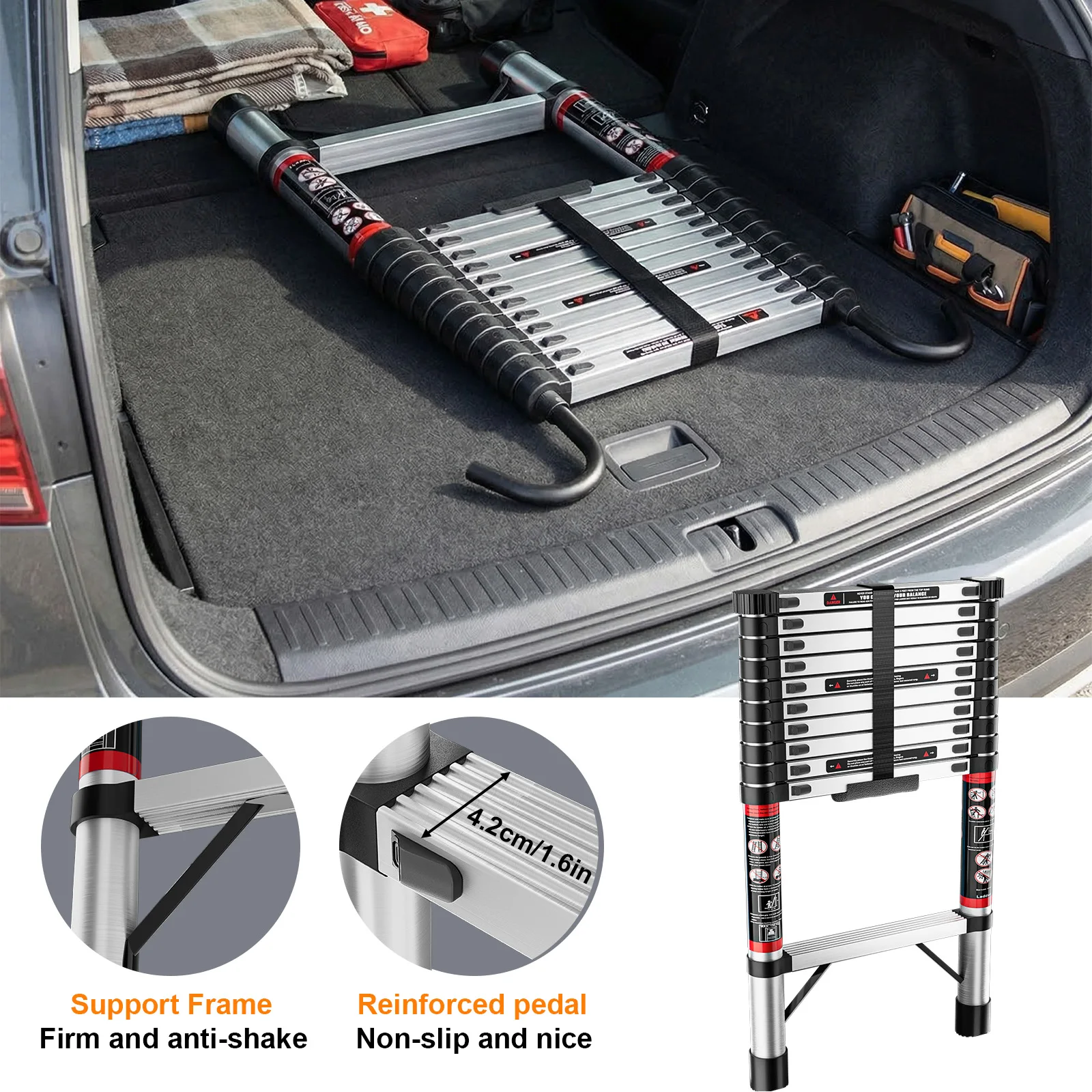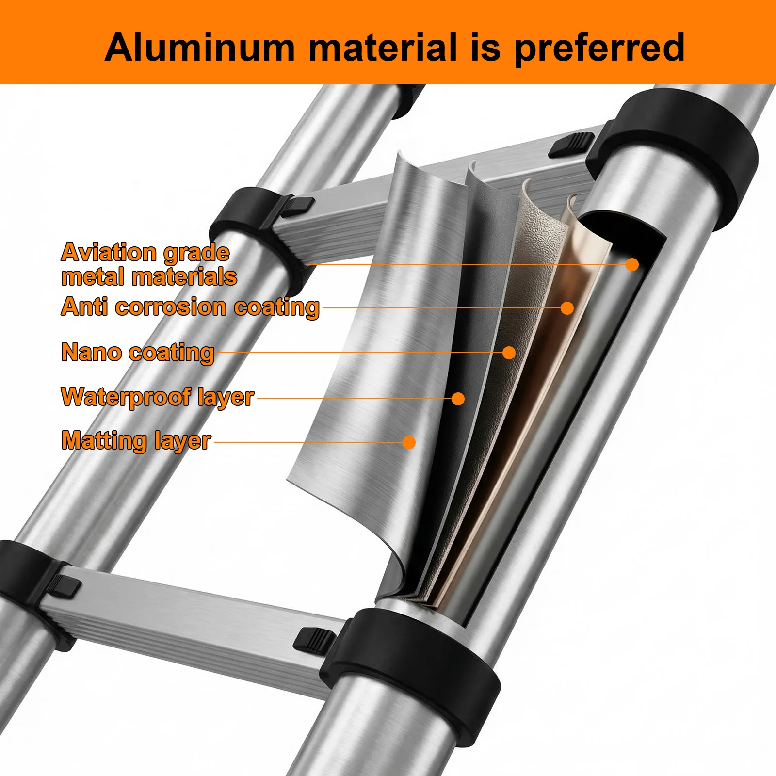 Escalera Extensible de 2.6M-5M de Acero Inoxidable, Resistente y Estable, con Pies Antideslizantes para Ático, Uso en Exteriores, EN131, Capacidad de Carga de 150KG - TopDealBox