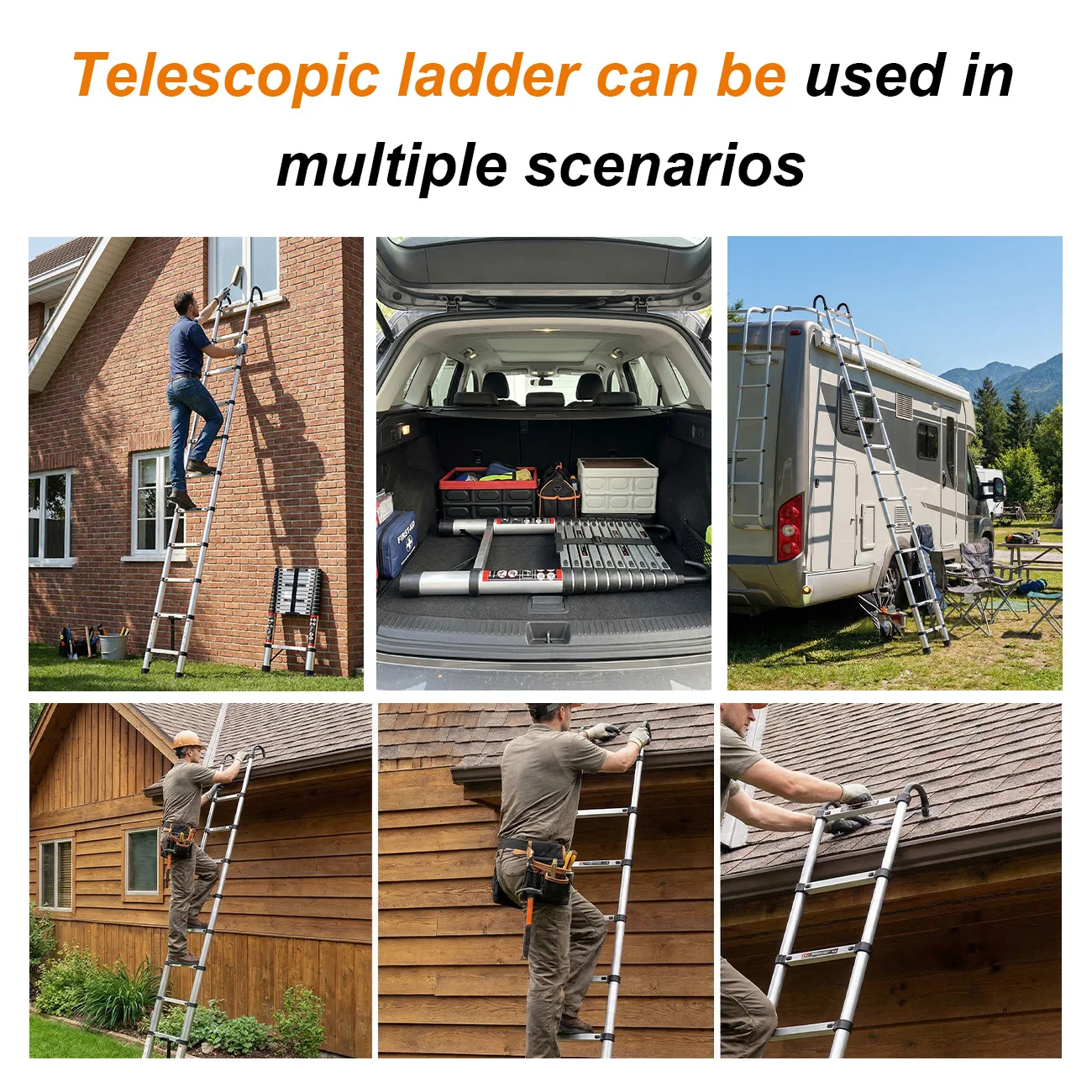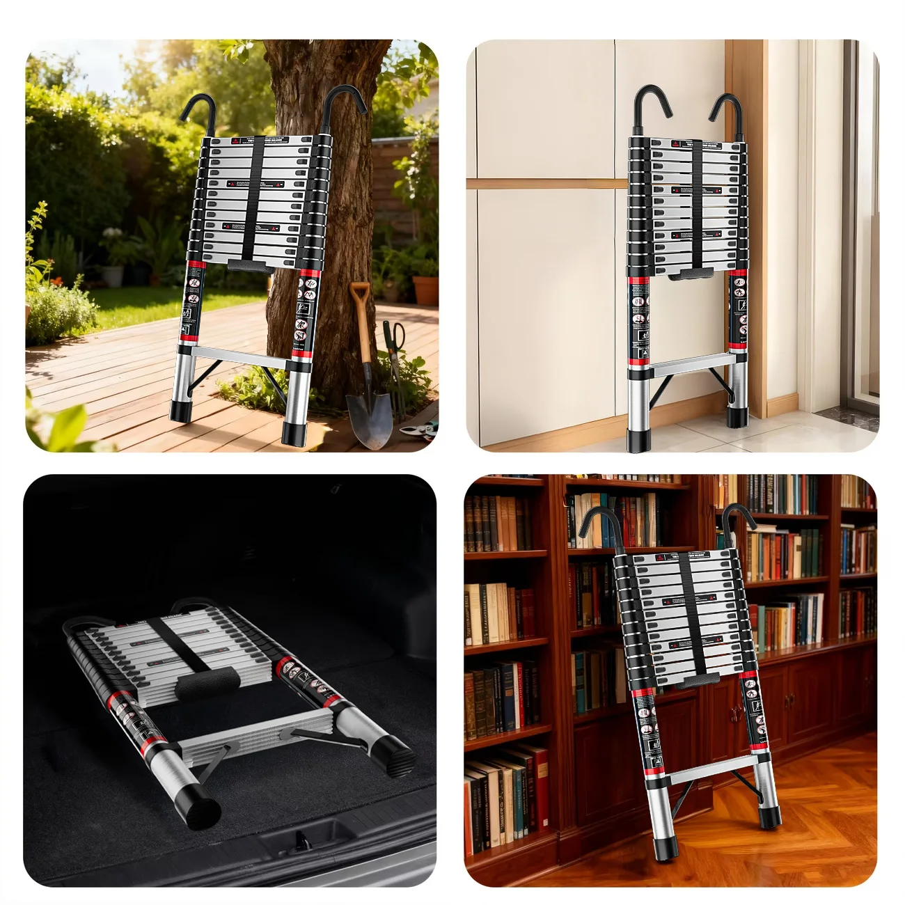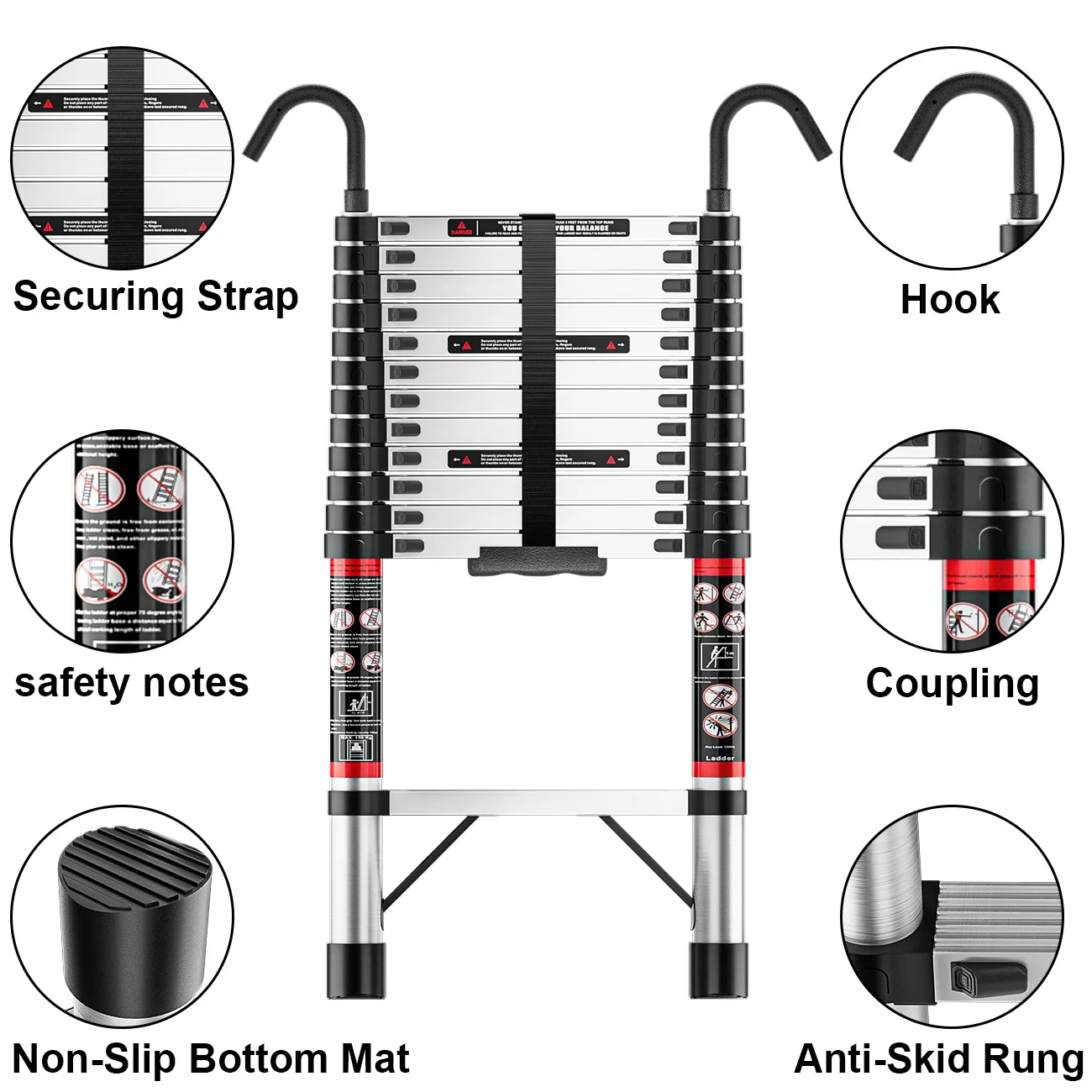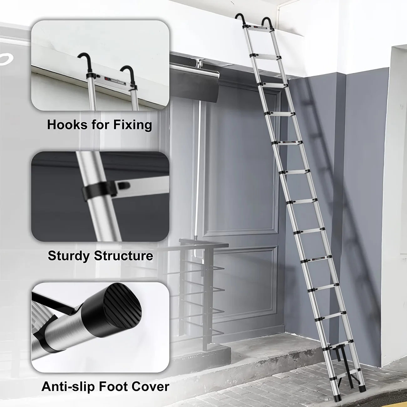 Escalera Extensible de Acero Inoxidable de 2.6M-5M, Resistente y Estable, con Pies Antideslizantes, para Áticos y Exteriores, EN131, Capacidad de Carga de 150KG - TopDealBox