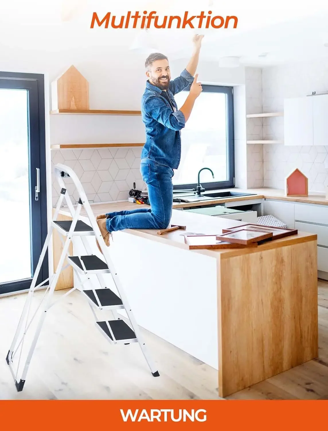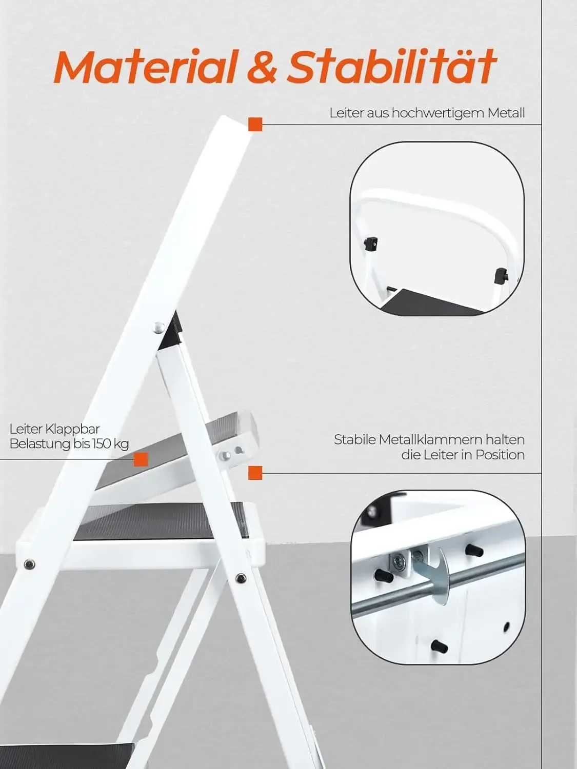 ↑Escalera Plegable de 4 escaleras, Antideslizante, con asa, Robusta y Grande, Multiuso para el hogar y la Oficina - TopDealBoxEscalera telescópica de 6,2 M, 20,3 pies con gancho desmontable, aluminio, EN131, carga máxima de 150 kg para loft, interior, exterior, oficina, casa