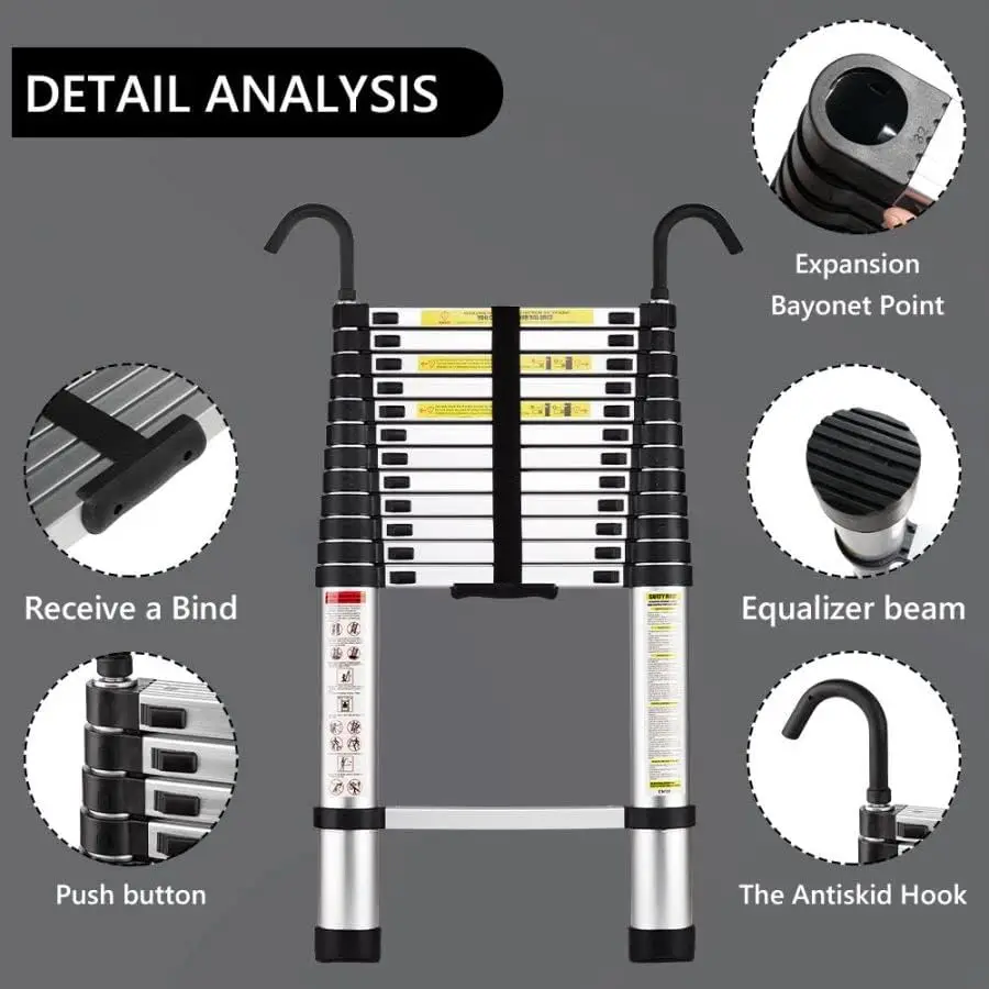 Escalera telescópica de 6,2 M, 20,3 pies con gancho desmontable, aluminio, EN131, carga máxima de 150 kg para loft, interior, exterior, oficina, casa Vista rápida