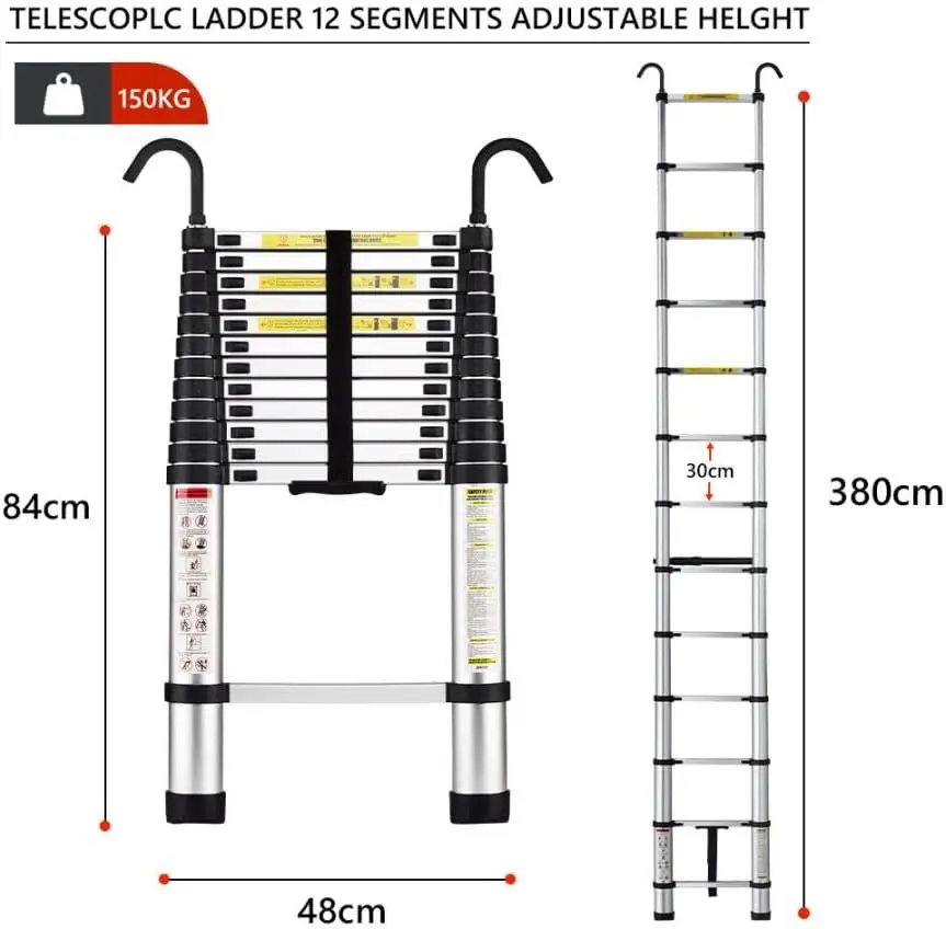 Inicio > Mejoras para el hogar > Escaleras y andamios Escalera Telescópica de 3,8m de Aluminio, Plegable, Reposabrazos Extraíble, Multifunción Portátil Plegable Extensible, Carga Máxima de 150 kg Información de envío