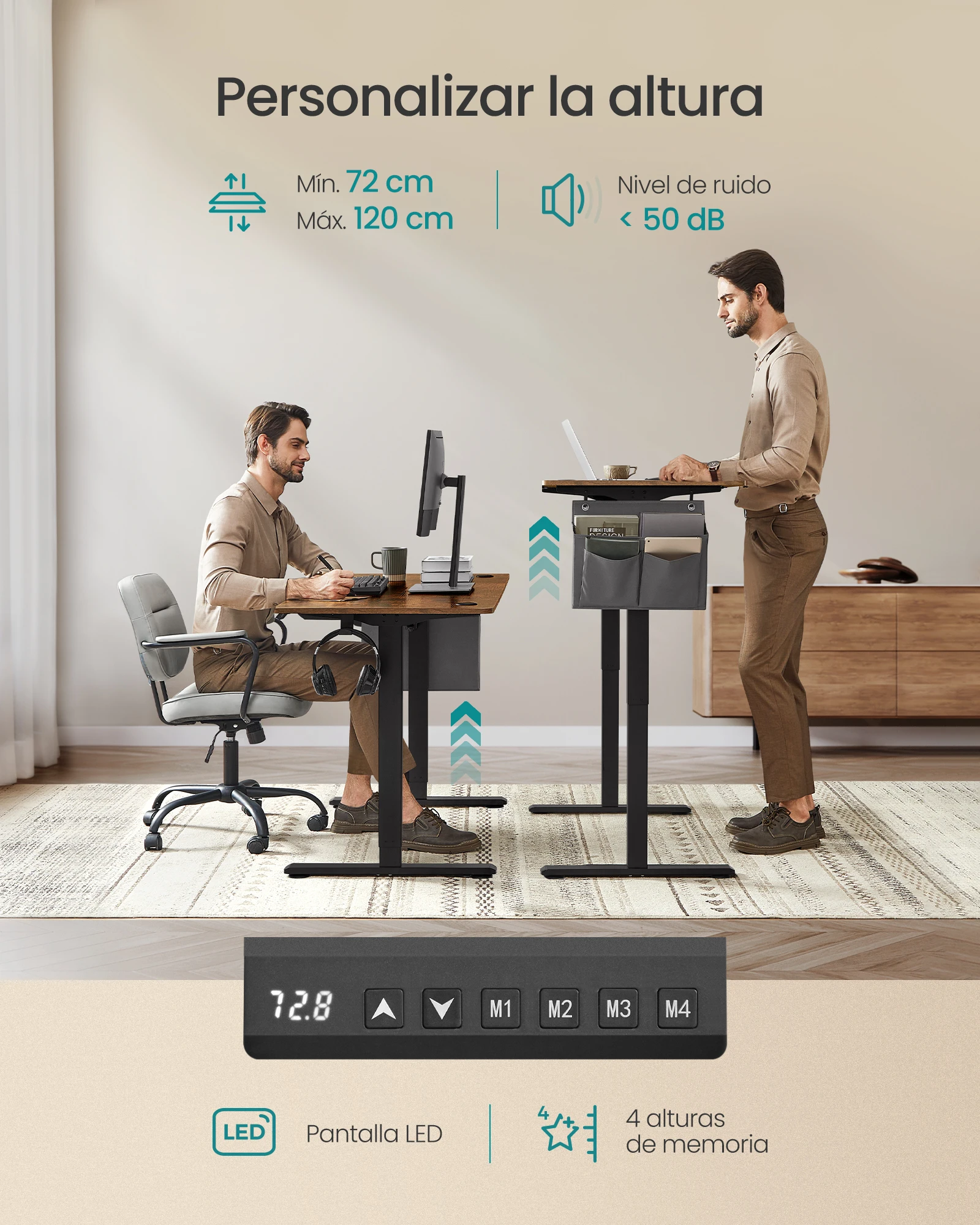 ♡Vista rápidaVASAGLE Escritorio Eléctrico Ajustable en Altura, 140 x 70 cm, para Trabajar de Pie, Soporte para Monitor, Cajón, Puerto USB-C, Recordatorio de Sedentarismo, para Oficina, Marrón Rústico/Blanco Nube125.68 EUREUR 245.27Destacado★★★★★★4.5