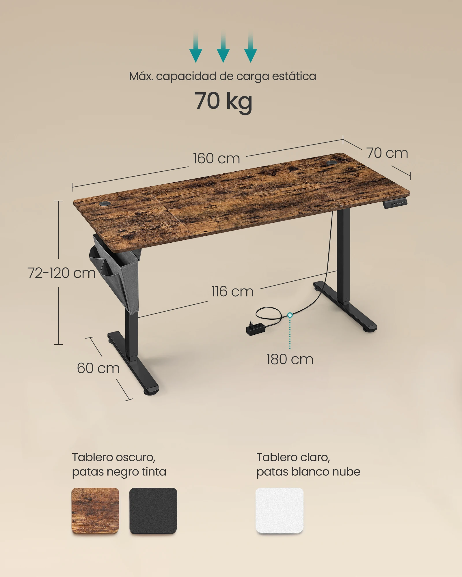 ♡Vista rápidaVASAGLE Escritorio Ajustable en Altura, 160 x 80 cm, Puerto USB-C, Estante para Regleta Eléctrica, Recordatorio de Sedentarismo, 3 Botones de Memoria, para Oficina, Negro Tinta/Marrón Rústico/Blanco Mate/Roble Dorado119.03 EUREUR 256.54Destacado★★★★★5.0