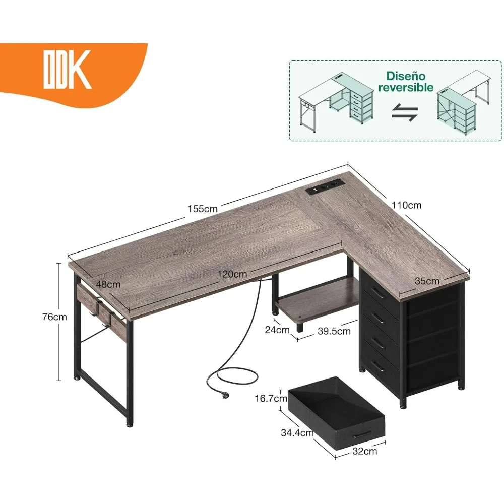 ♡Vista rápidaEscritorio esquinero con cajones de tela, escritorio L Reversible con cajón de archivos, escritorio para computadora con puerto de carga USB y toma de corriente (whi198.39 EUREUR 1583.32Destacado★★★★★5.0