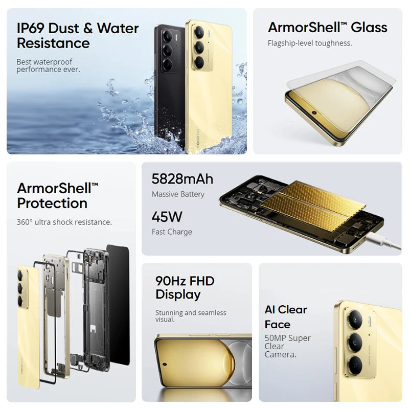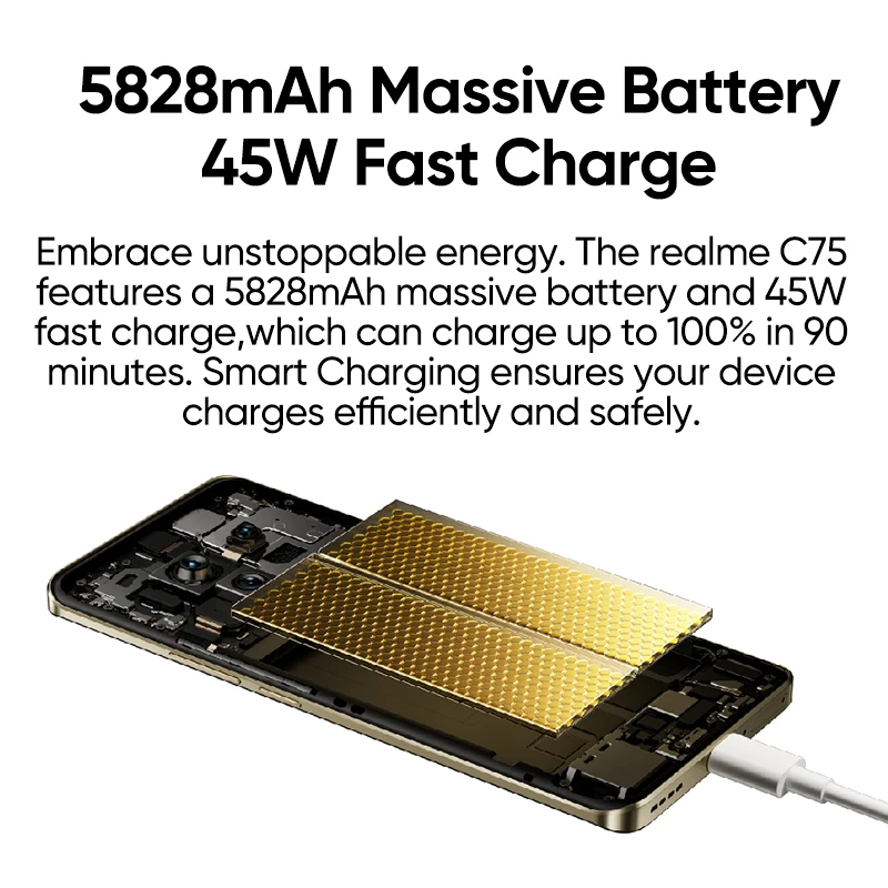 [Estreno mundial] realme C75 Smartphone Helio G92 Max Chipset 5828mAh Batería 45W Carga 6,72 ''90Hz Pantalla 50MP Cámara NFC IP69 - TopDealBox