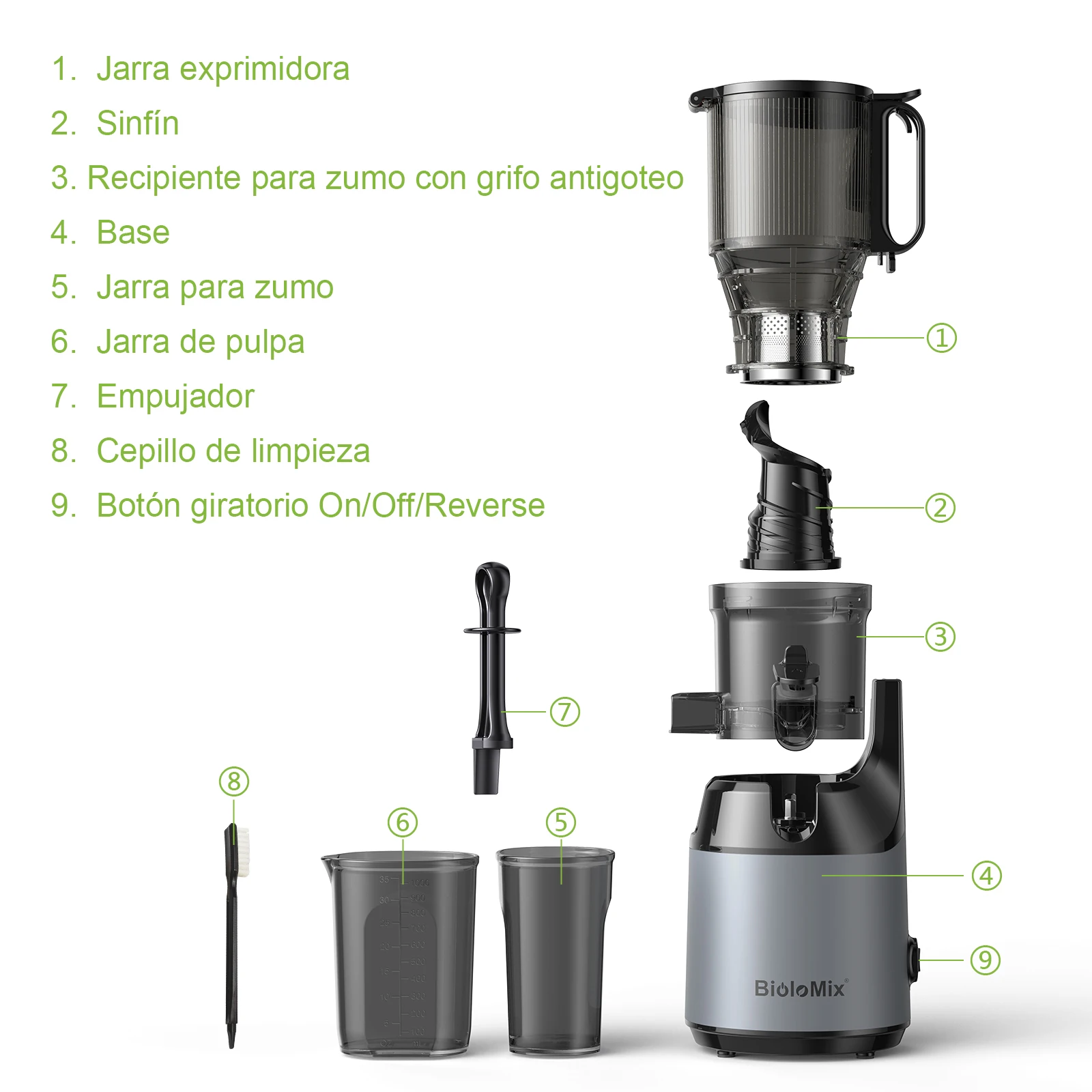 ♡Vista rápidaExprimidor de prensa en frío BioloMix con conducto de alimentación de 78 mm, extractor de jugo de masticación lenta con motor potente de 200 W y 40-65 RPM para frutas enteras85.69 EUREUR 1466.49Destacado★★★★★4.5