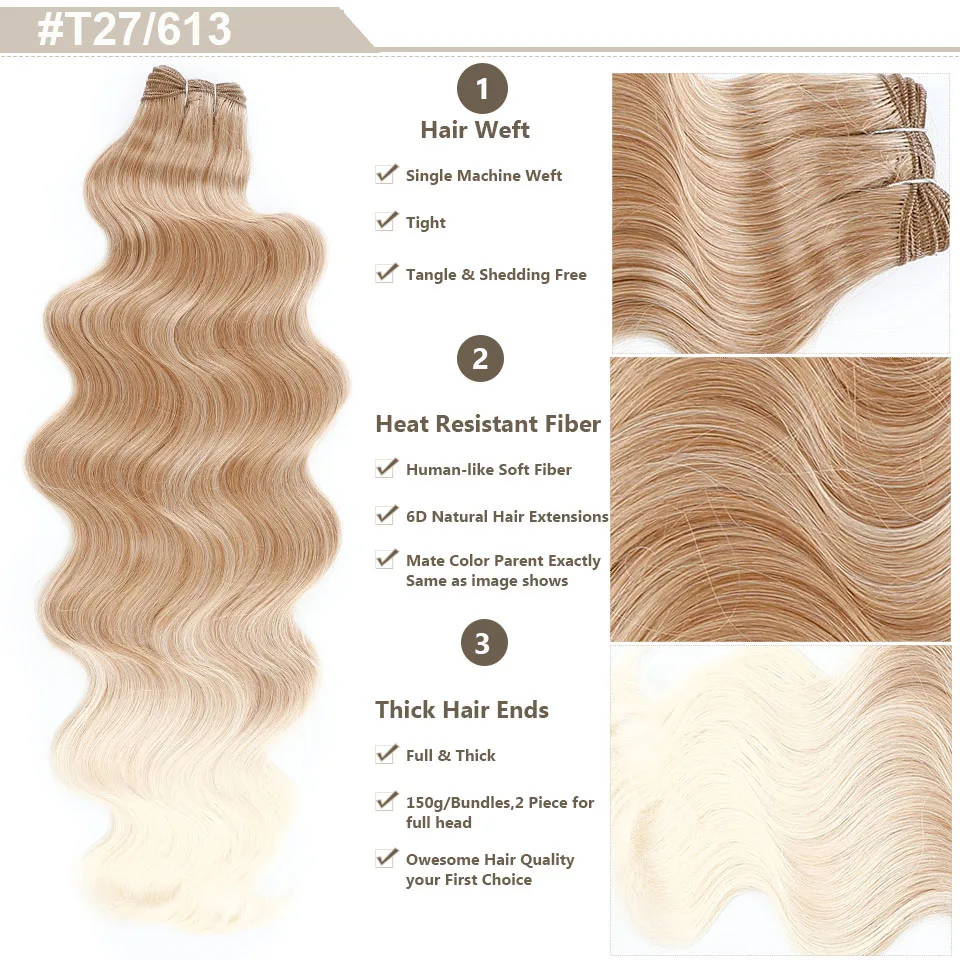 ♡Vista rápidaExtensiones de pelo ondulado Rubio 613 Bio Body Wave, extensión de cabello de fibra sintética suave y Natural similar a altas temperaturas de 26 "/30"10.39 EUREUR 81.33Destacado★★★★★5.0