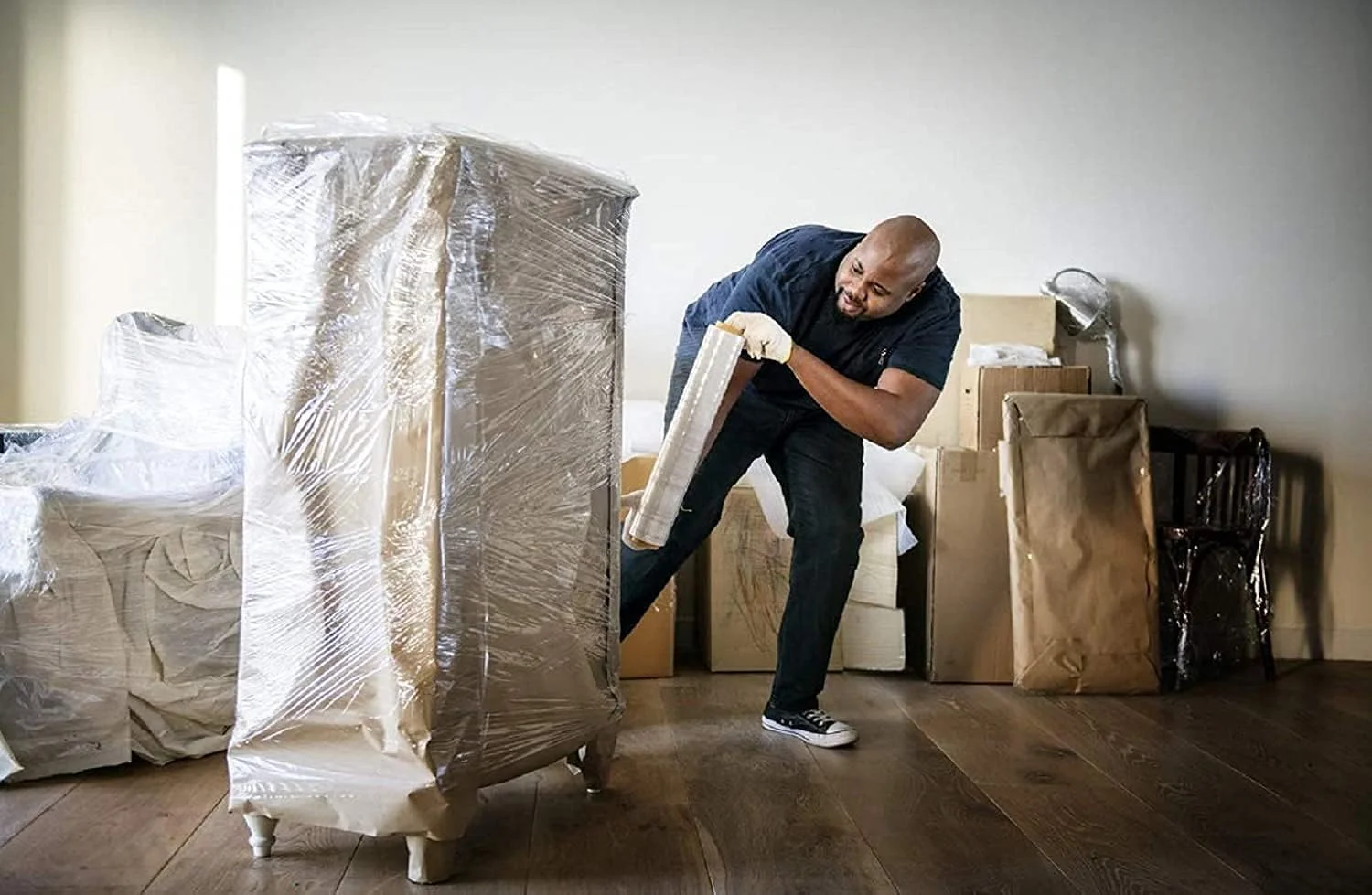 Film Transparente o Negro para Embalar 100MM x 200M 23 Micras Rollo de Papel Film Resistente de Plástico con Alta Elasticidad para Mudanzas y Envíos - TopDealBox