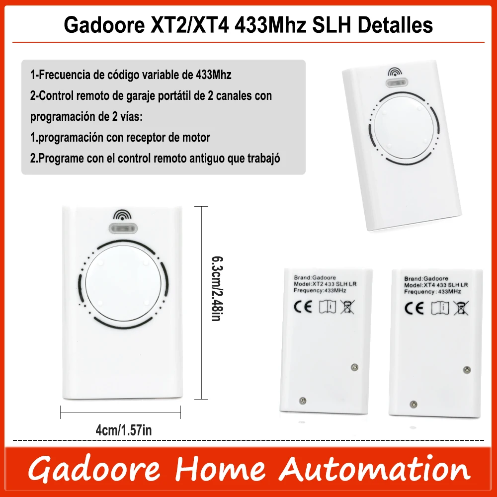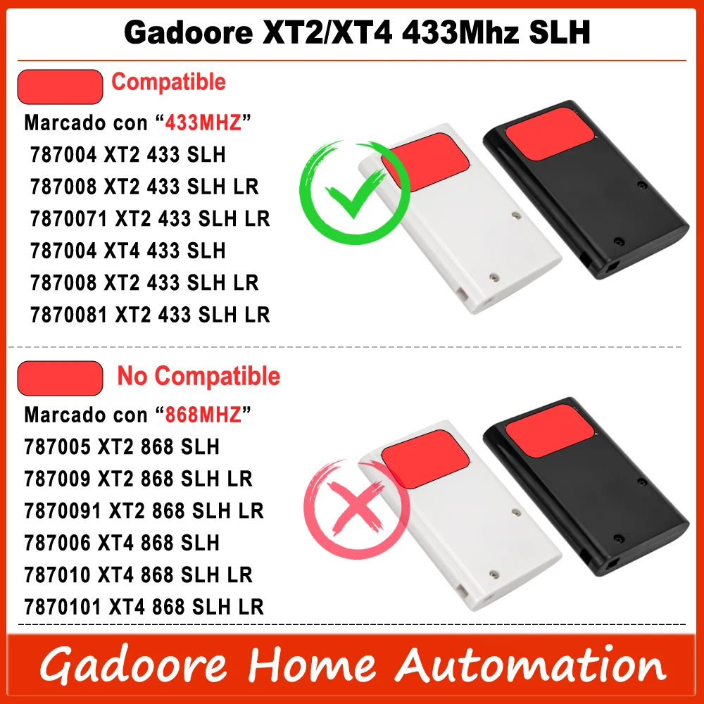 Gadoore XT2 XT4 433MHz SLH LR Control remoto para puerta de garaje XT2 XT4 433MHz Compatible con frecuencia de 433MHz XT2 433 SLH XT2 433 SLH LR XT4 433 SLH XT4 433 SLH LR Mando a distancia de garaje - TopDealBox