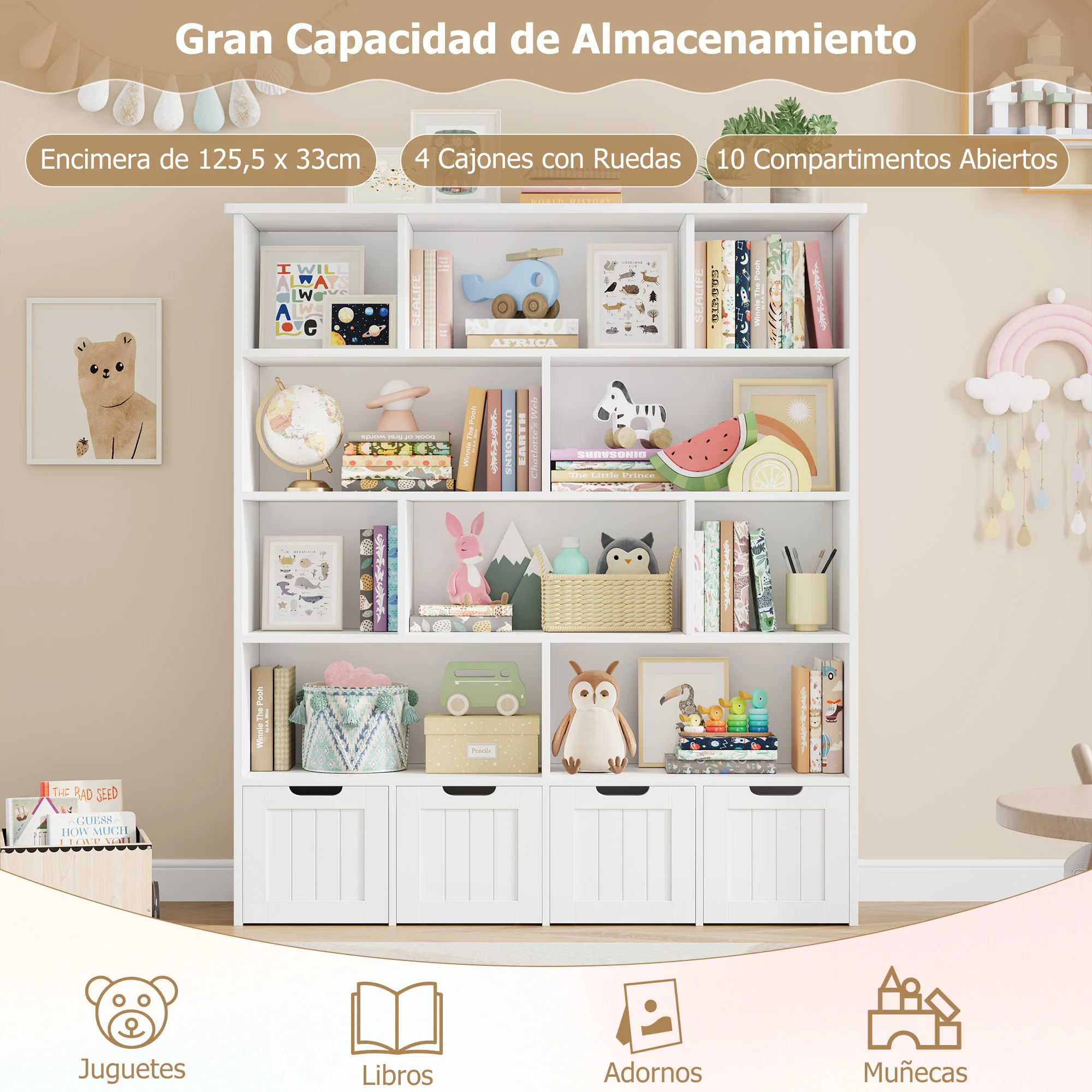 ♡Vista rápidaGetone Estantería Infantil, Organizador de Juguetes para Niños, Mueble Almacenaje Juguetes, Librería Infantil Montessori, Con 13 estantes y 4 cajones con ruedas 125.5x33x175cm206.69 EUREUR 2929.07Destacado★★★★★5.0