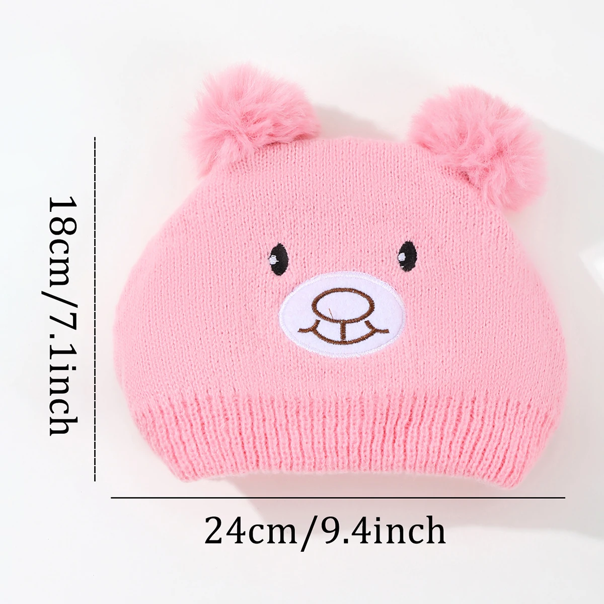 Gorro de oso bonito para bebé, niño y niña, gorro de punto cálido con pompón de dibujos animados, cubierta para el cuello, gorros con protección para los oídos para niño pequeño, Otoño Invierno - TopDealBox