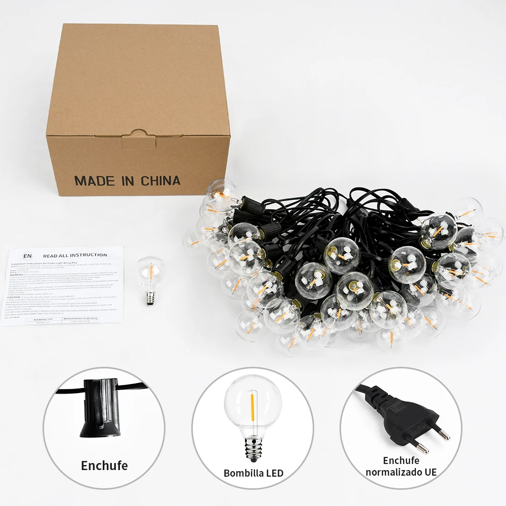 ♡Vista rápidaGuirnaldas de luz Led G40 para exteriores, cadena de bombillas impermeables, luz de hadas de 30M, guirnaldas de calle para decoración de jardín y boda19.69 EUREUR 23.47Destacado★★★★★★4.9