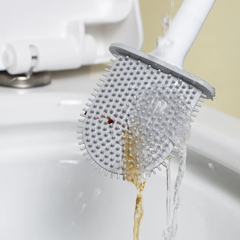 Cepillo de silicona colgante para inodoro con mango largo, limpiador flexible, cepillo de baño de secado rápido, soporte, accesorios de baño - TopDealBox