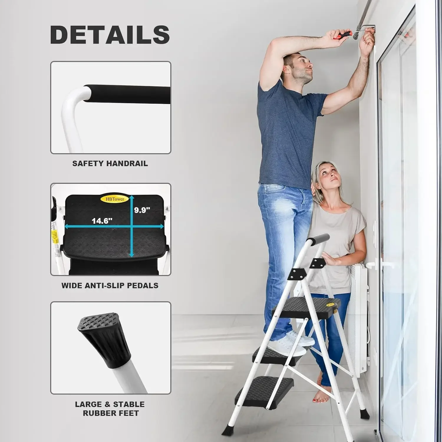 ↑HBTower Escalera Plegable Escalera 3 Peldaños Taburete Cocina con Pedal Ancho Antideslizante, Agarre - TopDealBoxEscalera telescópica de 6,2 M, 20,3 pies con gancho desmontable, aluminio, EN131, carga máxima de 150 kg para loft, interior, exterior, oficina, casa