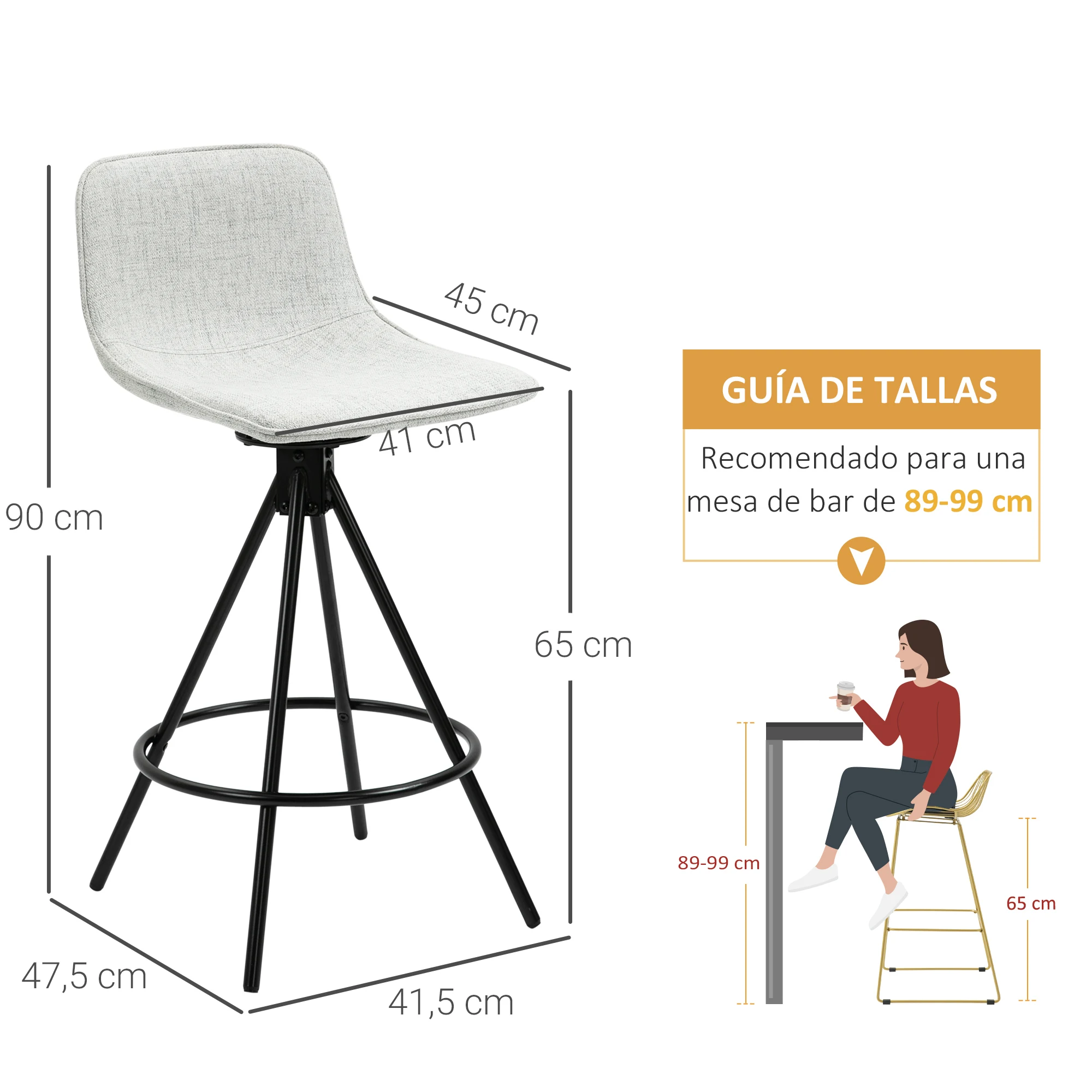 HOMCOM Juego de 2 Taburetes Altos de Cocina Giratorios 41,5x47,5x90cm Gris Claro - TopDealBox
