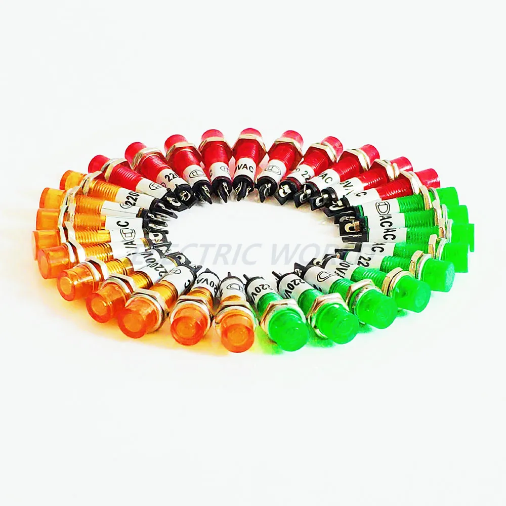 Luces indicadoras de plástico LED 7mm agujero 5 uds lámpara de señal impermeable 12V 24V 220v sin cable lámpara de señal de alimentación indicación LED - TopDealBox