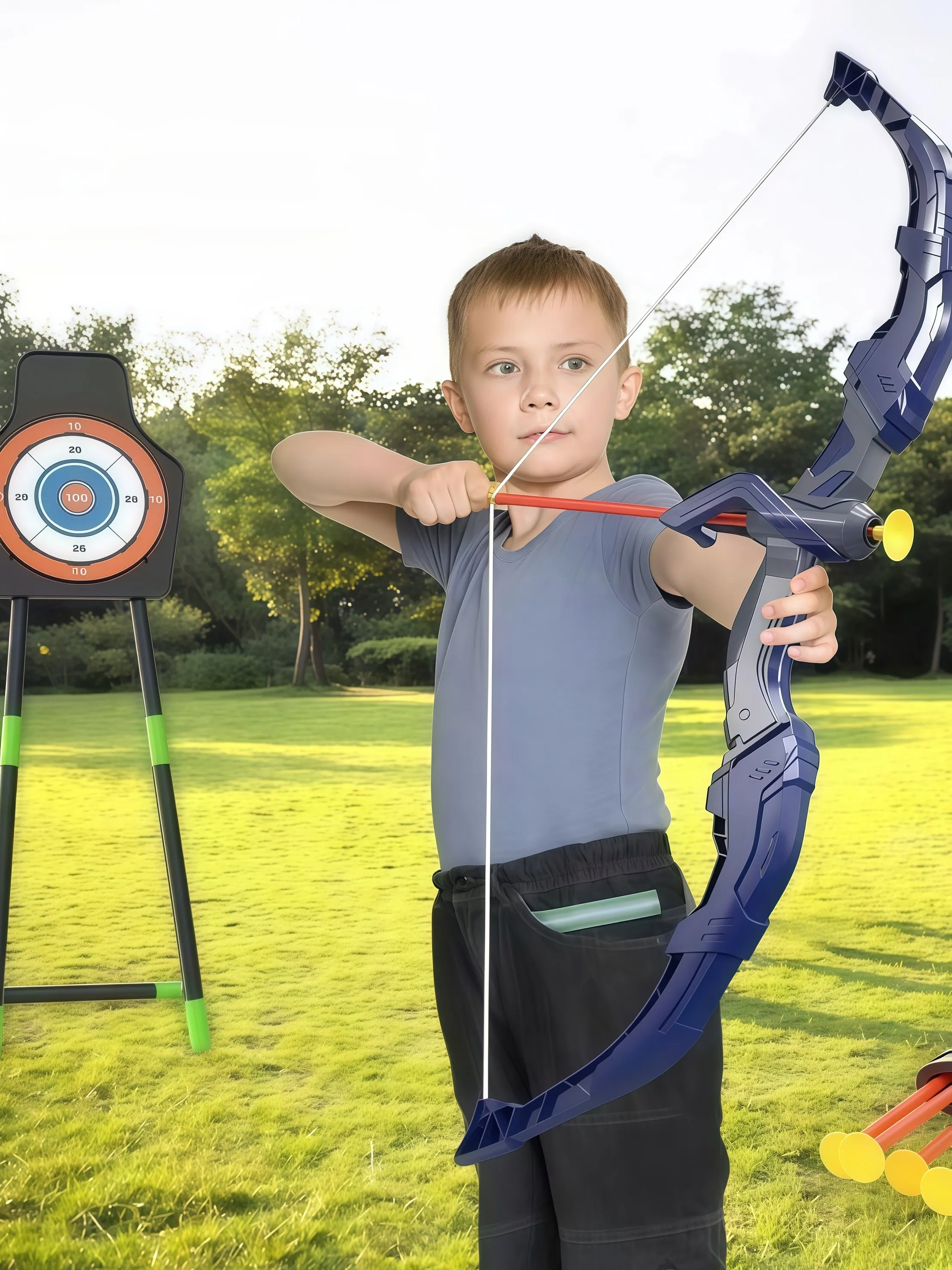 Juego de arco y flecha para niños, juego de juguetes de tiro con arco con luz LED para niños de 4 a 8 a 12 años, con 10 flechas de ventosa, objetivo y carnada - TopDealBox
