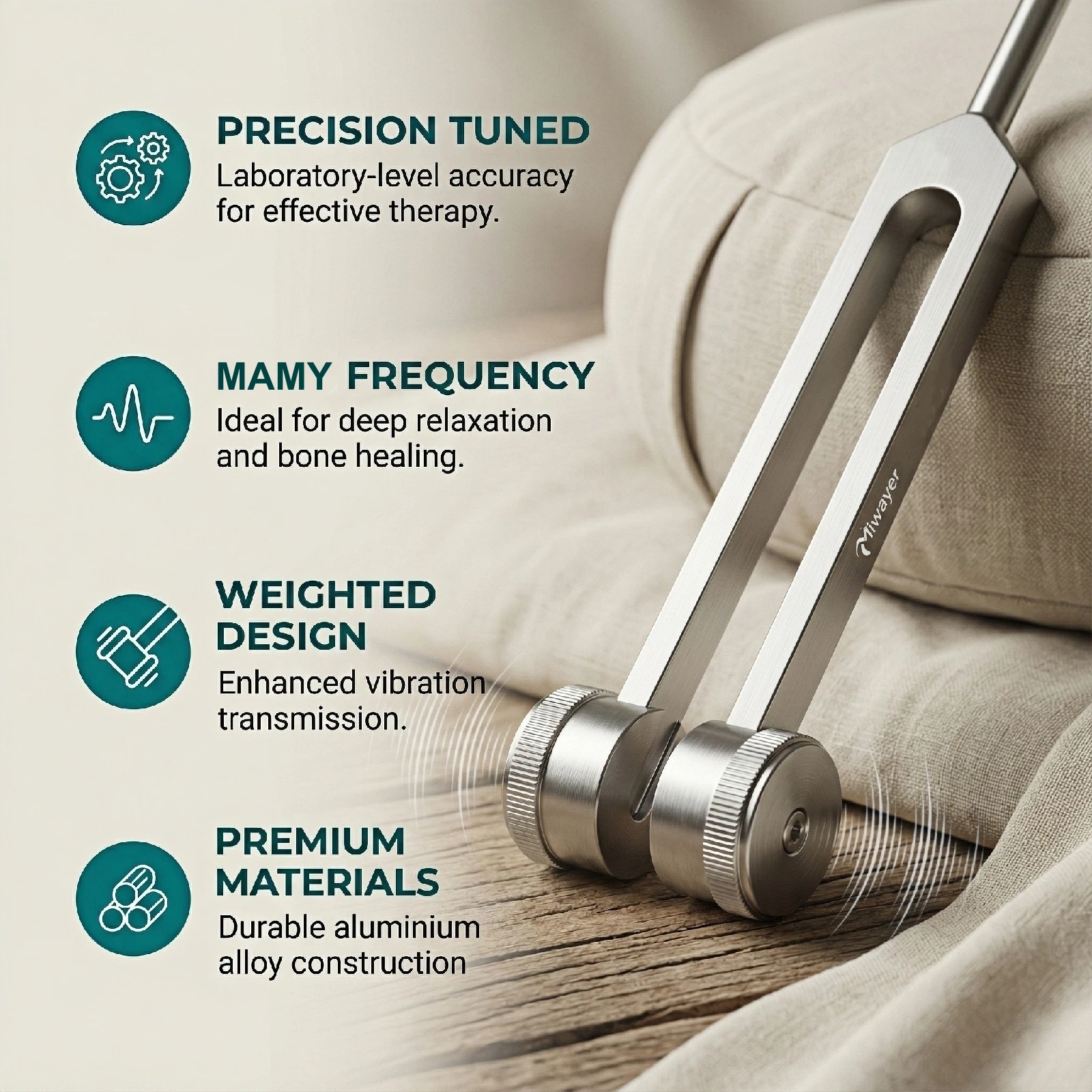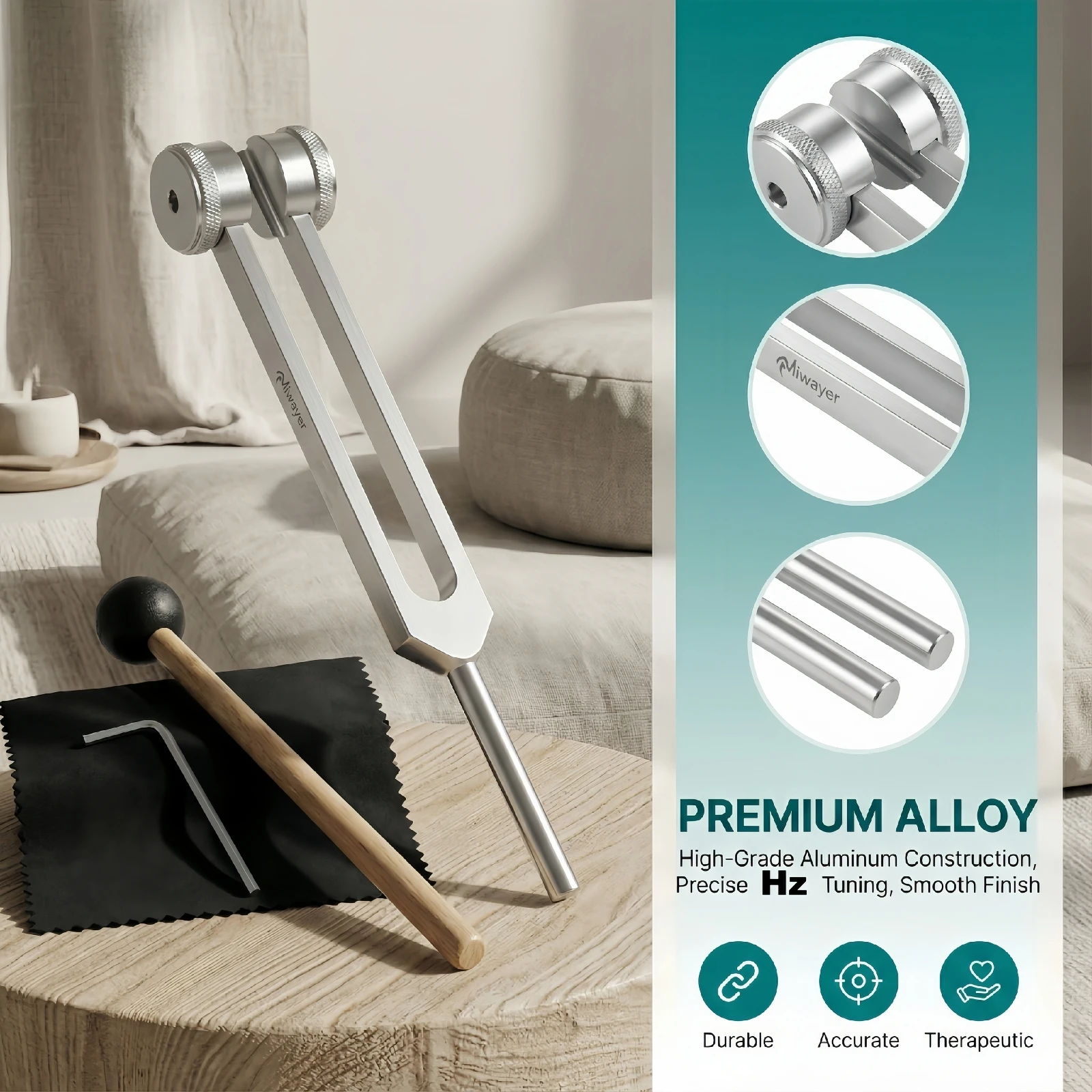 Juego de Diapasones Miwayer 128Hz 256Hz 512Hz con Martillo y Bolsa, Instrumentos Profesionales de Terapia de Sonido para Sanación, Chakra, Yoga - TopDealBox