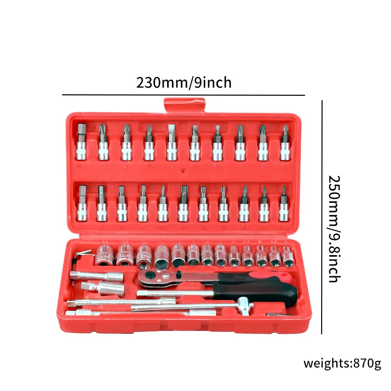 Juego de herramientas de 46 piezas: caja de herramientas artesanal para uso doméstico en General, juego de herramientas de reparación de automóviles y motocicletas, con caja de herramientas de plástico