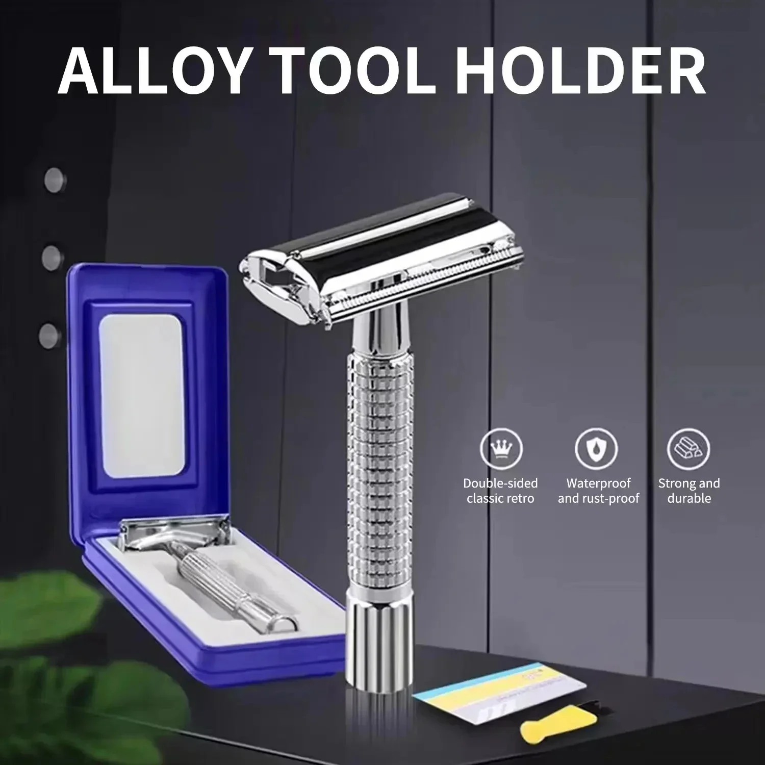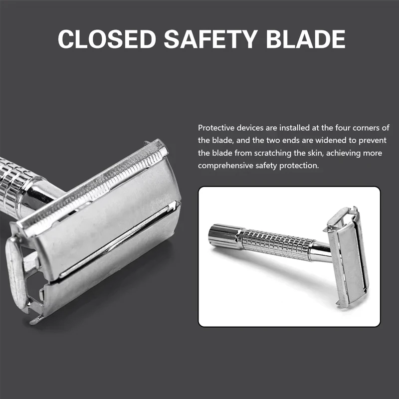 Juego de maquinilla de afeitar de seguridad de doble filo Unisex con soporte de caja delicada, accesorios de estilo de peluquero profesional, hoja incluida - TopDealBox