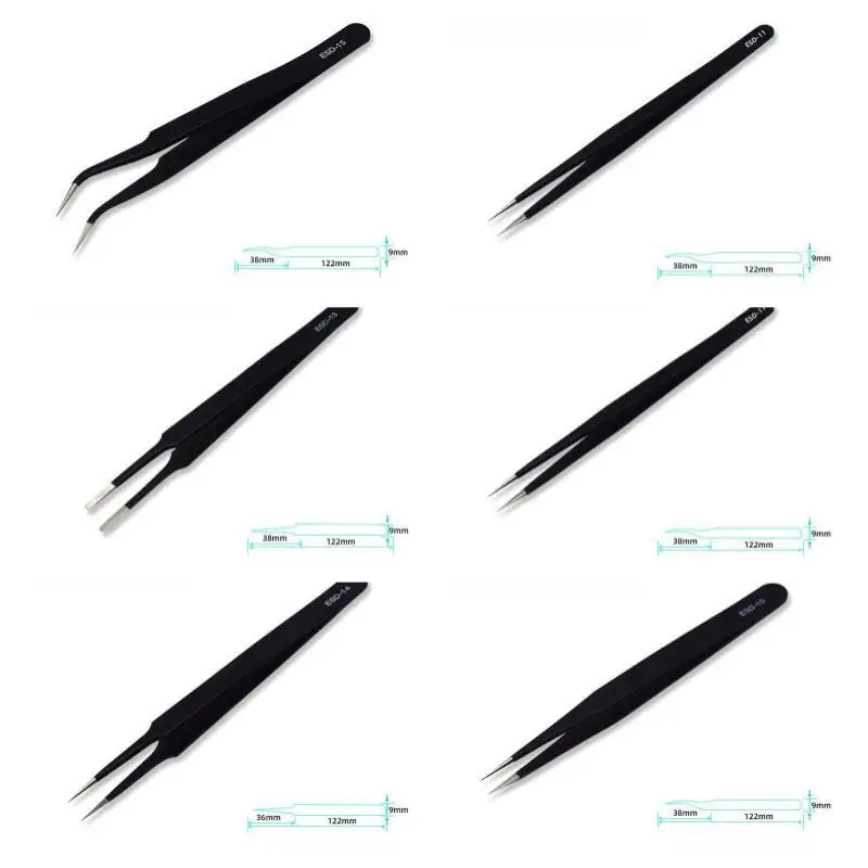 ♡Vista rápidaJuego de pinzas largas de precisión de 6 piezas, herramientas de reparación de acero inoxidable antiestáticas ESD para reparación electrónica, artesanía de soldadura1.85 EUREUR 28.94Destacado★★★★★★4.9