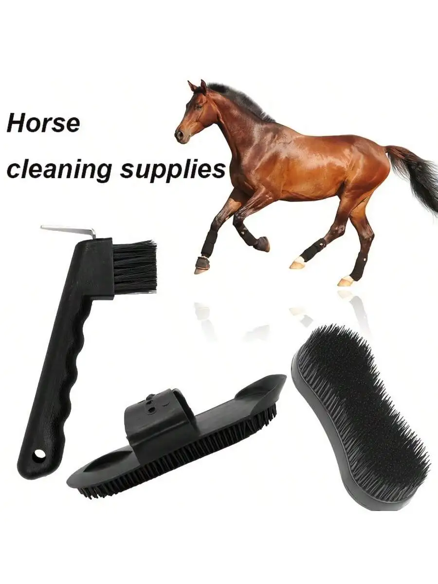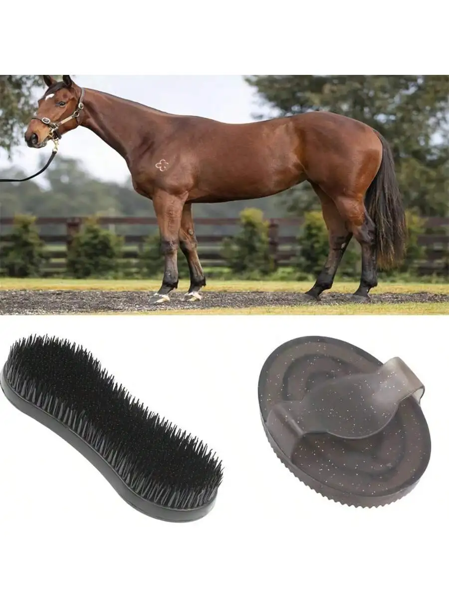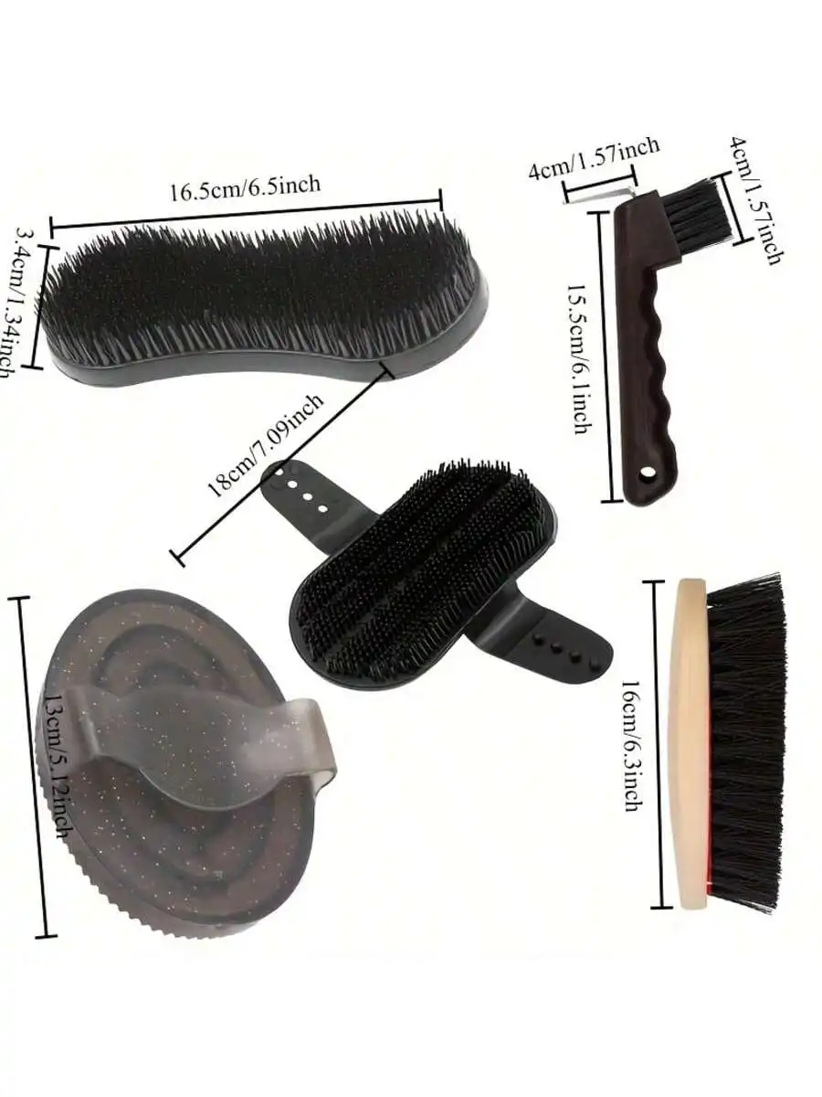 Kit de 5 piezas para el cuidado del caballo - Juego completo de cuidado para establos - Cepillo de plástico, cepillo para el cuerpo, limpiador de pezuñas y más para caballos y ponis - TopDealBox