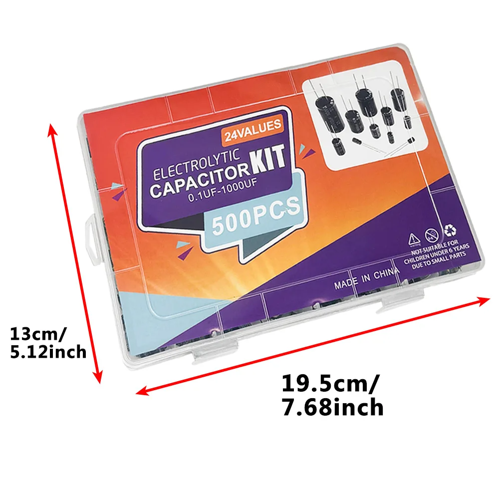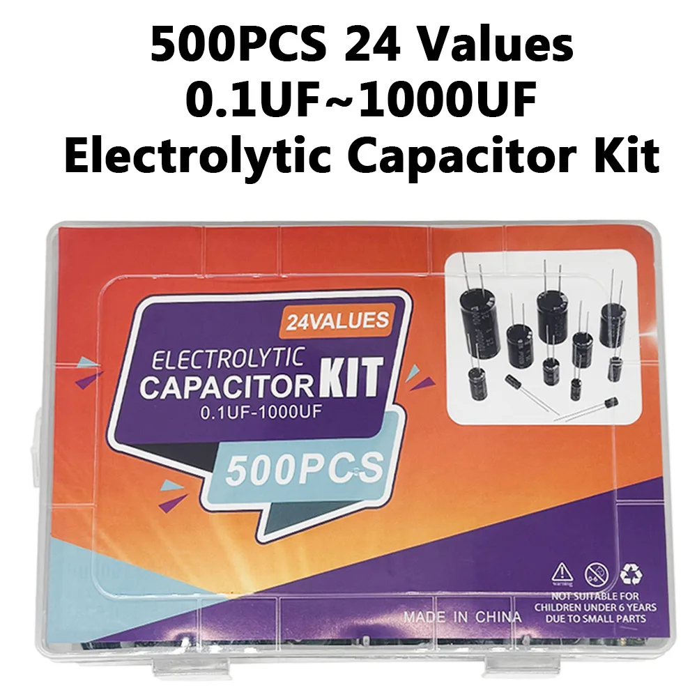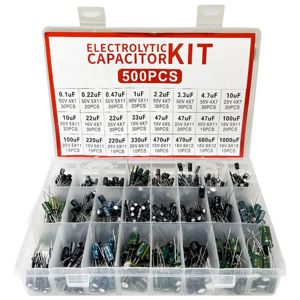 Kit de 500 Condensadores Electrolíticos DIP Surtidos 10V 16V 25V 50V 0.1uF-1000uF 24 Valores, Componentes Electrónicos para Proyectos DIY - TopDealBox