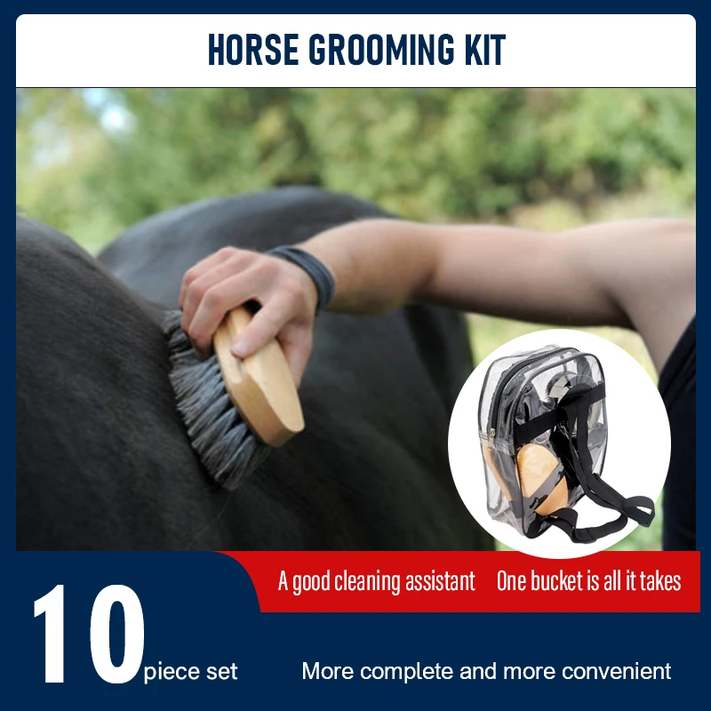 Kit Profesional de Cuidado de Caballos, Juego de 10 Piezas, Cepillo y Peine Completos para Caballos, Herramientas de Limpieza de Establos, Suministros Ecuestres - TopDealBox