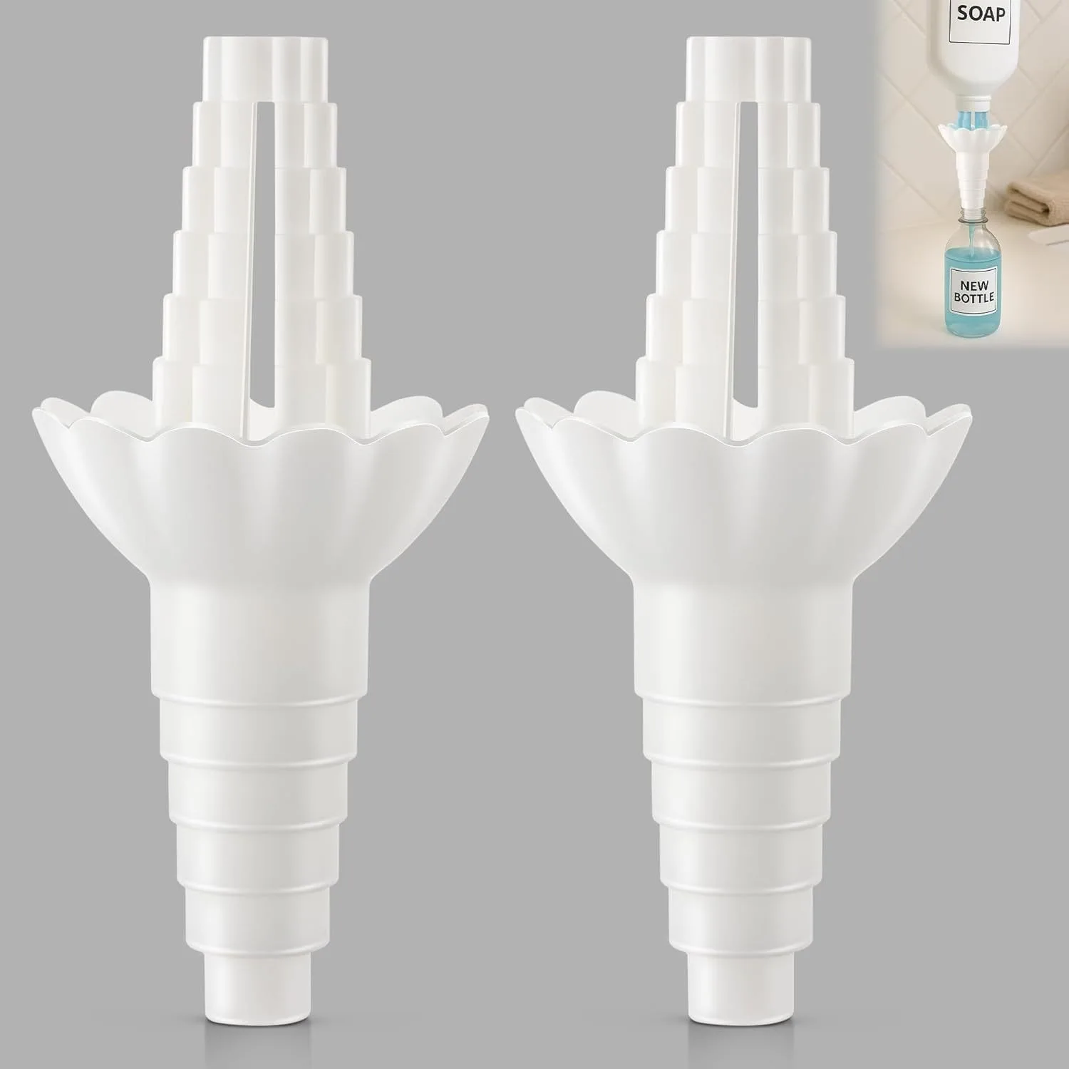 Kit universal de vaciado de botellas: conector de transferencia de líquido reutilizable sin adaptador de embudo de residuos, compatible con jabón, champú - TopDealBox