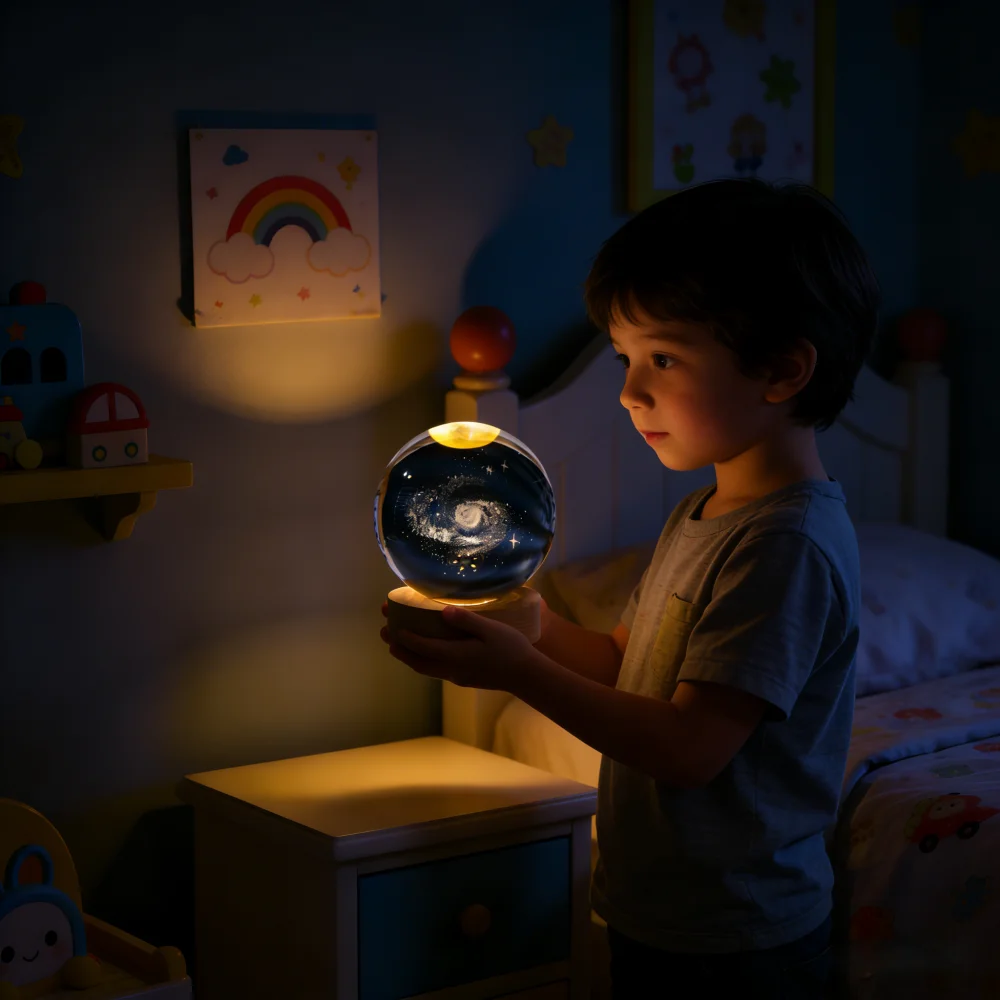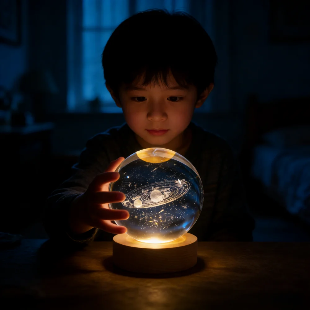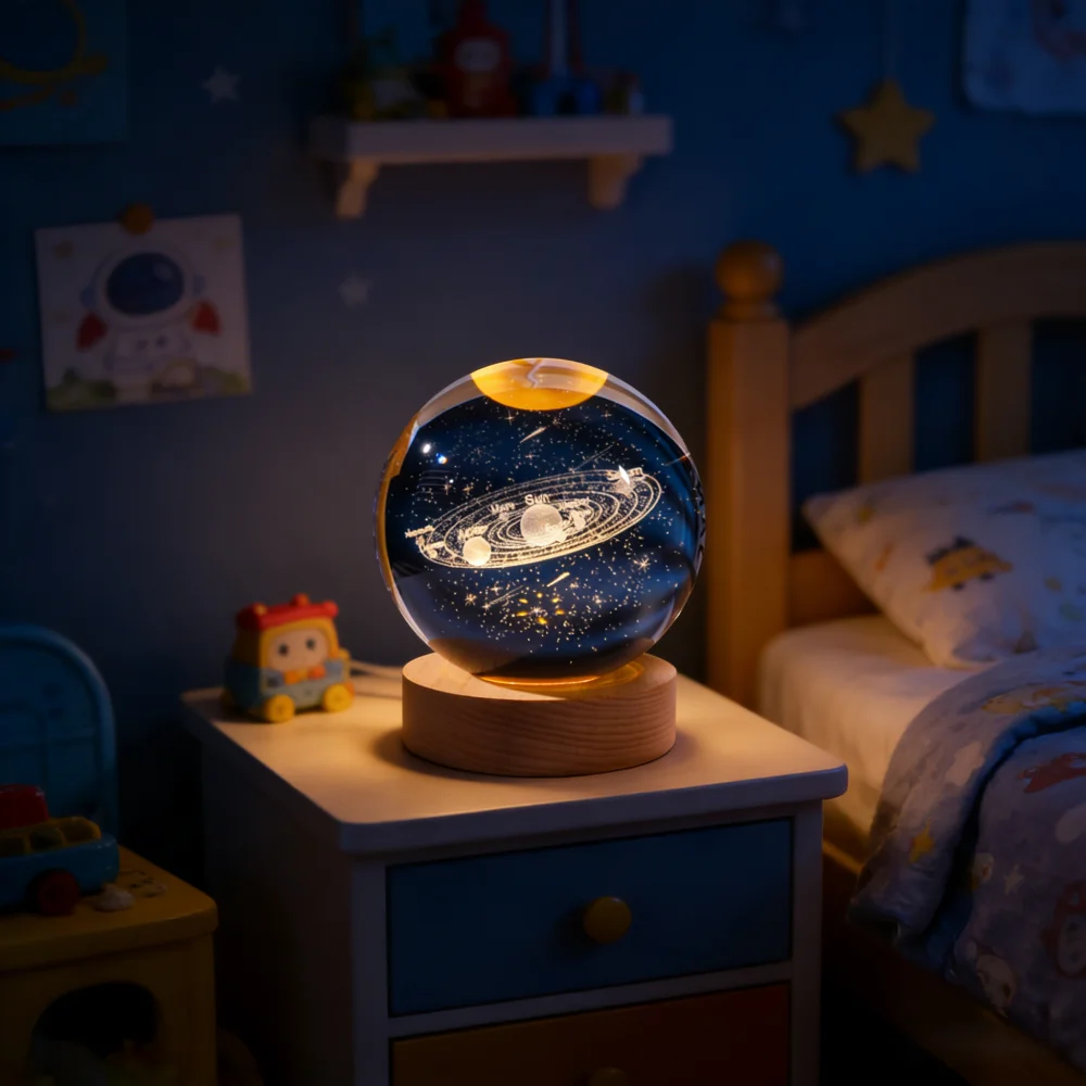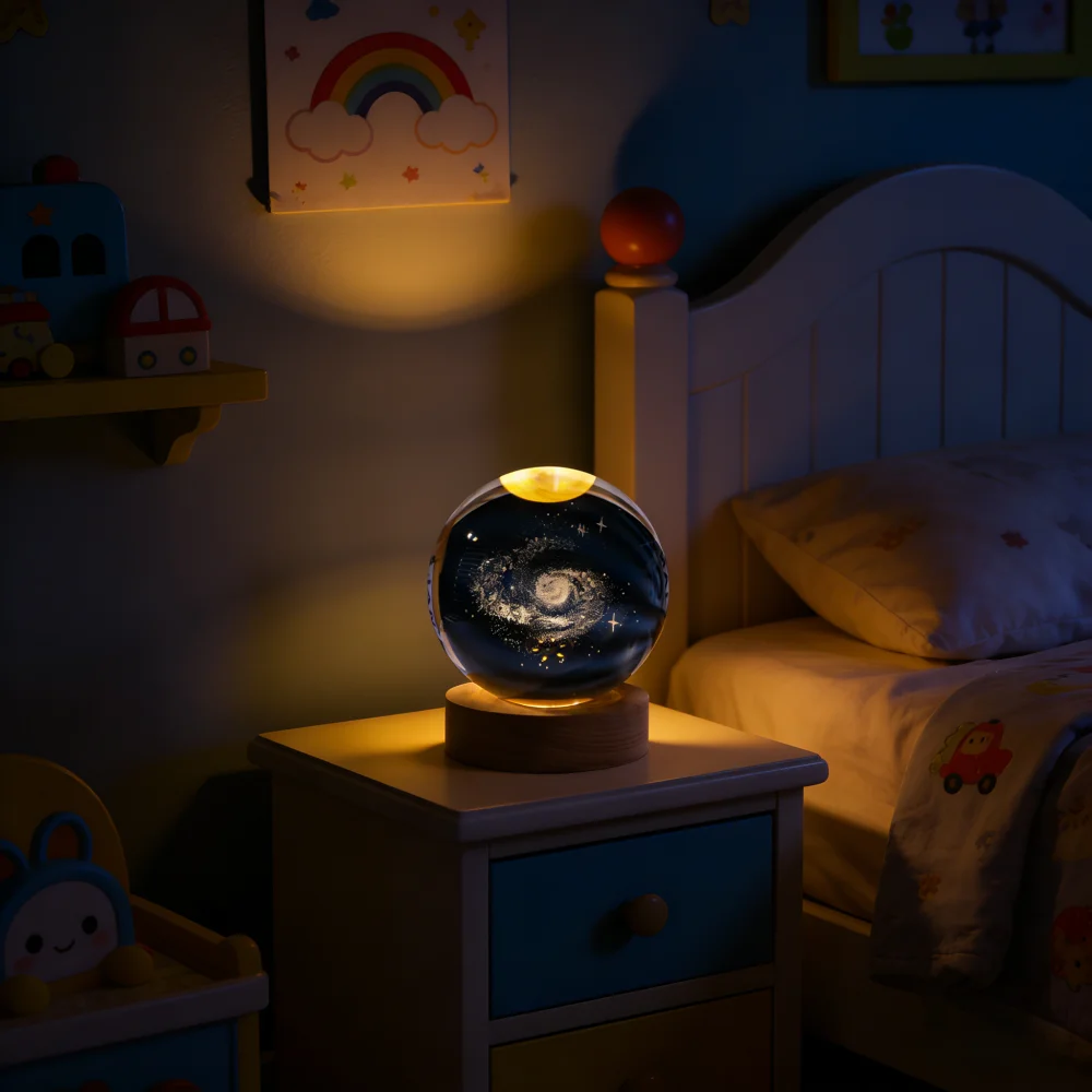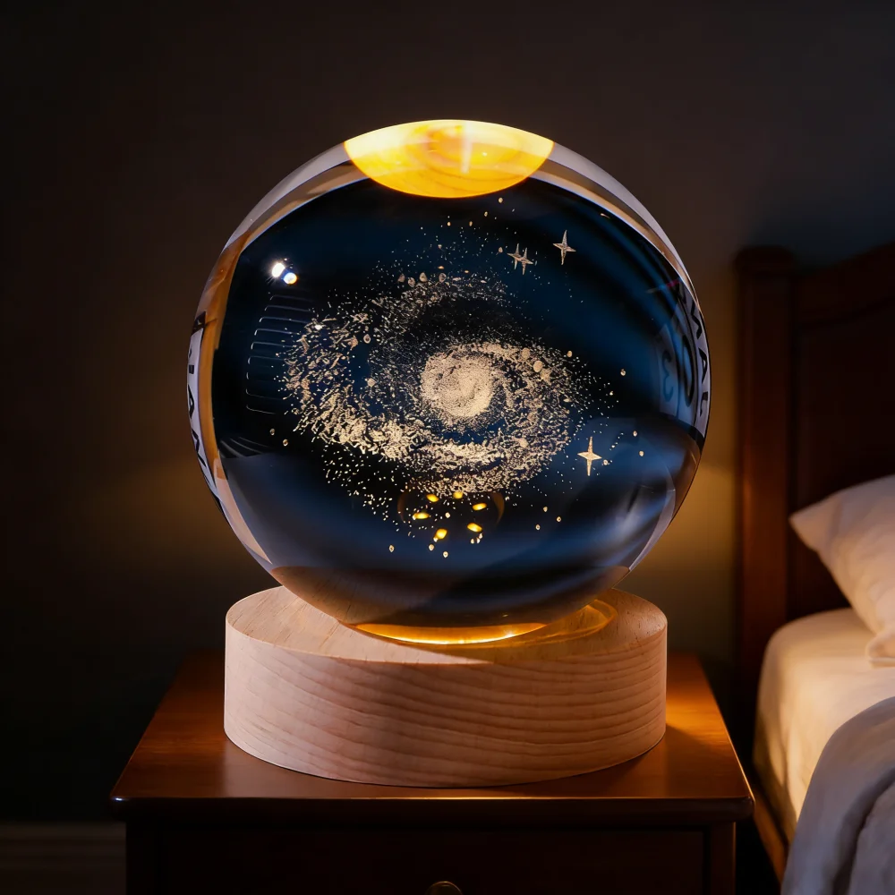 Lámpara LED de Noche con Bola de Cristal 3D Única, Lámpara de Mesa con Luz de Galaxia, Saturno, Planetas y Luna, Regalo de Cumpleaños para Niños - TopDealBox
