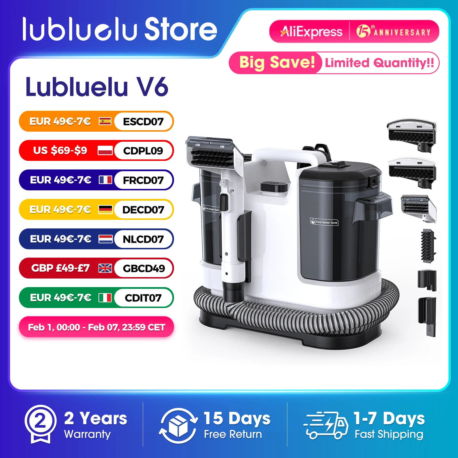 ♡Vista rápidaLubluelu V8 800W Limpiador de alfombras de agua caliente 60 ° C limpieza profunda de las manchas 15kPa del animal doméstico fuerte succión 5M cable de alimentación largo 1.75L tanque73.97 EUREUR 2172.92Destacado★★★★★★4.8
