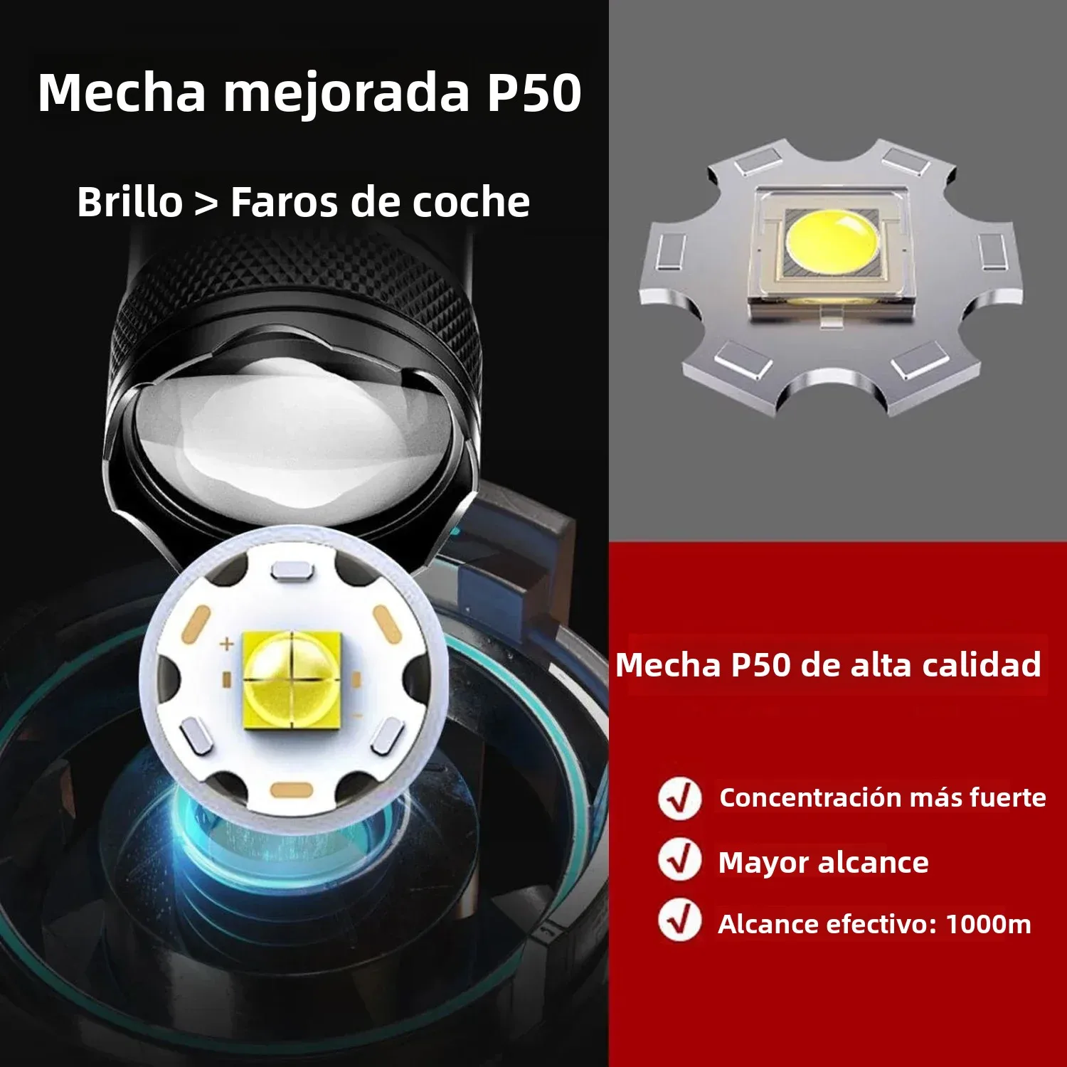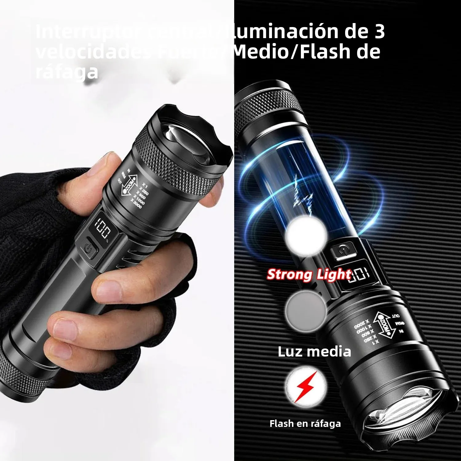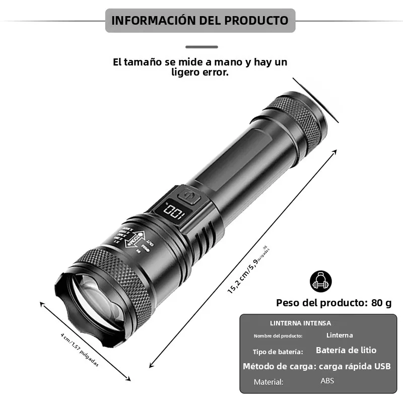 ♡Vista rápidaLinternas Led de alta potencia y fuerte, linterna táctica de 2000LM con luz de pantalla, carga USB, Camping, pesca, linterna con Zoom de emergencia3.19 EUREUR 58.00Destacado★★★★★4.5