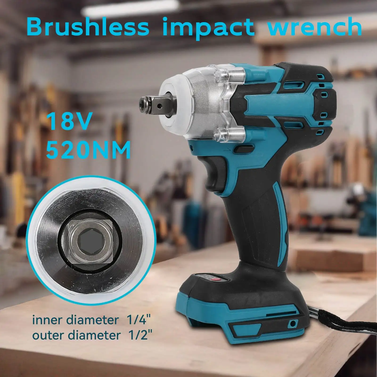 Llave de impacto eléctrica sin escobillas de torsión 520N.m, destornillador inalámbrico de 1/2 pulgadas, herramienta eléctrica para Pin de batería Makita de 18V - TopDealBox